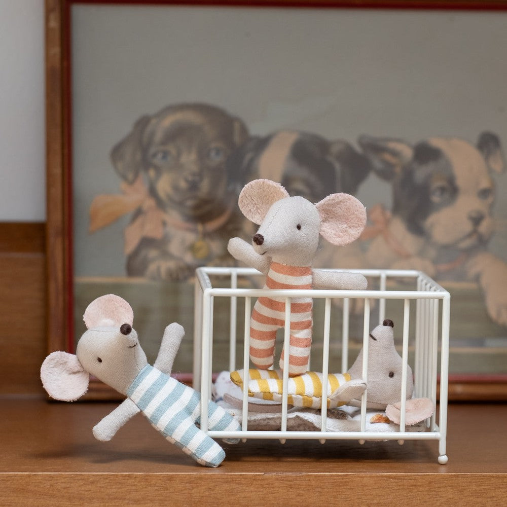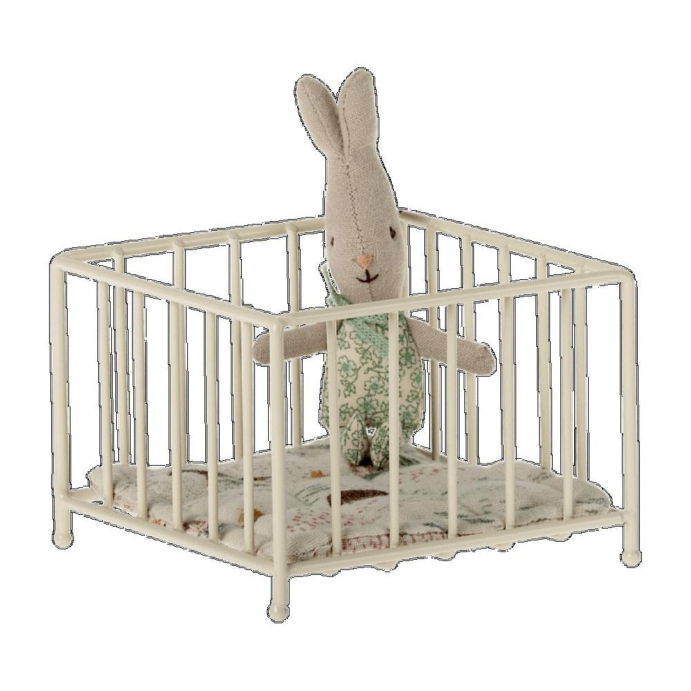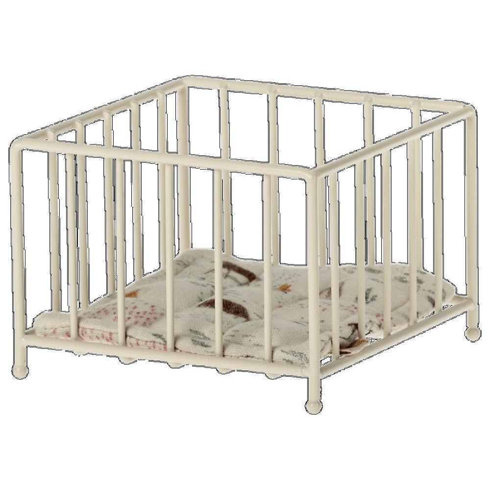 A cozy little nook for MY sized Maileg babies to stay safe and comfy. This metal playpen has a soft mattress covered with a unique Maileg fabric. The perfect addition to your little one's pretend nursery. Perfect with the Maileg triplets (sold separately).