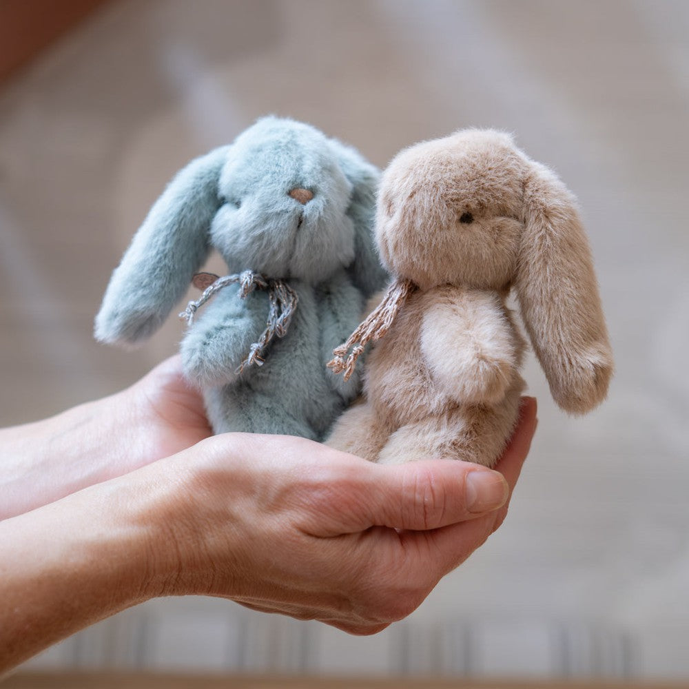 A small plush toy which is perfect for a tiny hand. The mini sized bunny has the sweetest look and a very soft hand feel.