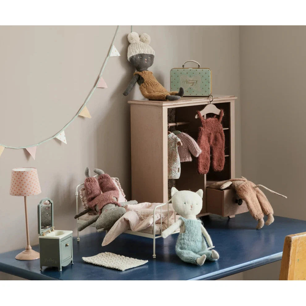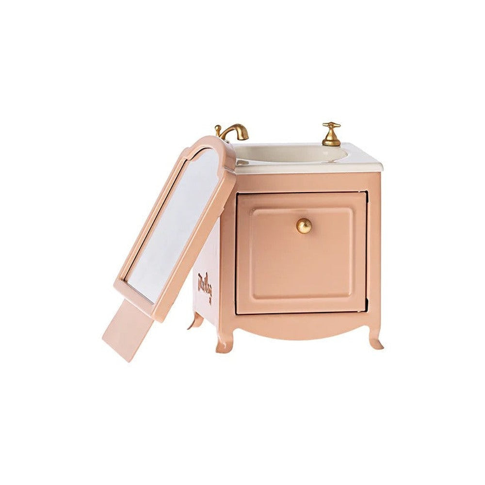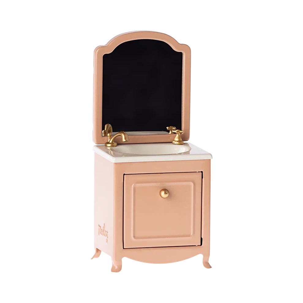 Designed for the Maileg Royal mice, this bathroom vanity would look regal in any mouse house! Complete with mirror and sink, there's even a small cabinet under the sink to store everything your mice need to get ready for bed or to start their day.