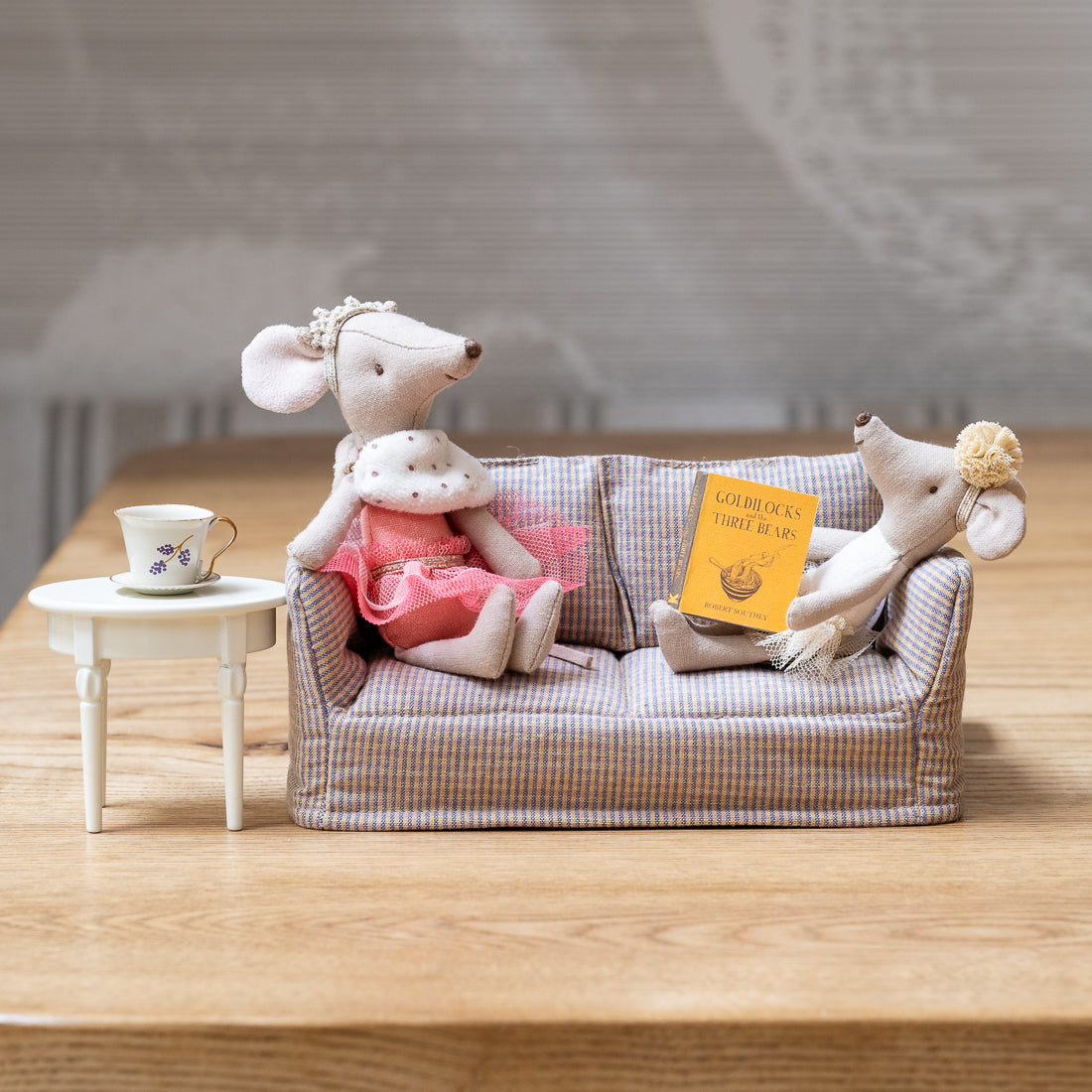 All families needs a soft couch to rest in. The mice family can all sit tight in this and have a cosy time, it fits perfectly to the living room in the Mouse hole Farmhouse.