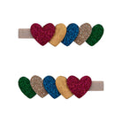Add a pop of fun loving sparkle with our Jazzy layered heart clips! Featuring colourful hearts crafted from glitter and metallic fabrics, these charming clips will complement any outfit!