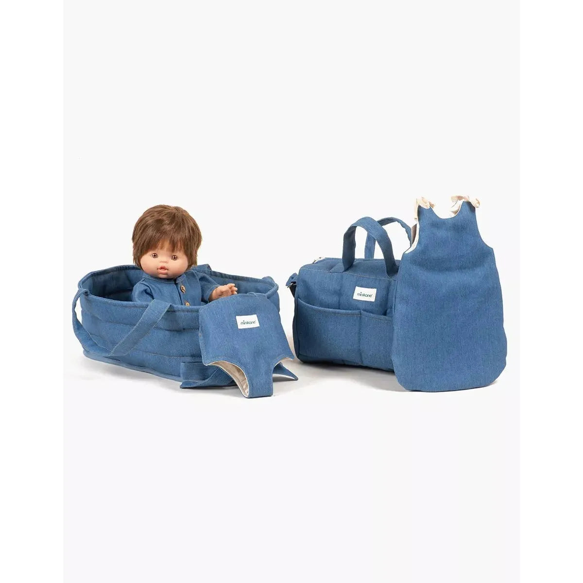 Minikane blue denim doll carrier