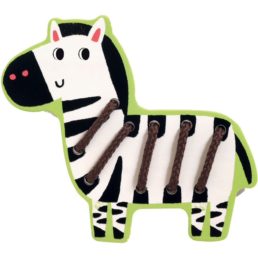 Learn how to thread with this fun and colourful lacing set from Djeco. Lacing sets are great not only for learning the basics of sewing, but to help develop the fine motor skills used for writing, tying shoes, using buttons, and more. This set includes 4 friendly animals with pre-punched holes. Use the laces provided to put the stripes on the zebra and tiger and the mane on the lion! Fantastic for hand-eye coordination and easy to store and redo over and over.