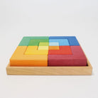 This beautifully coloured square puzzle from German company Grimms is imaginative and inventive, great for both creativity and problem solving. Create two dimensional patterns within the provided frame or design 3D structures. Simplify the fun and use the blocks to create houses, animal pens, and vehicles, or challenge yourself to create different cubic structures.