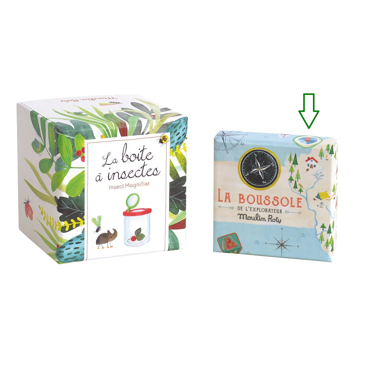 For playing at being an explorer and discovering the world: vintage-style compass presented in a delightful illustrated gift box, treasure-hunter style... Ideal to develop a child's sense of direction. Approx diameter 6 cm. Part of the Le Jardin du Moulin collection.Safety rated for ages 3+.
