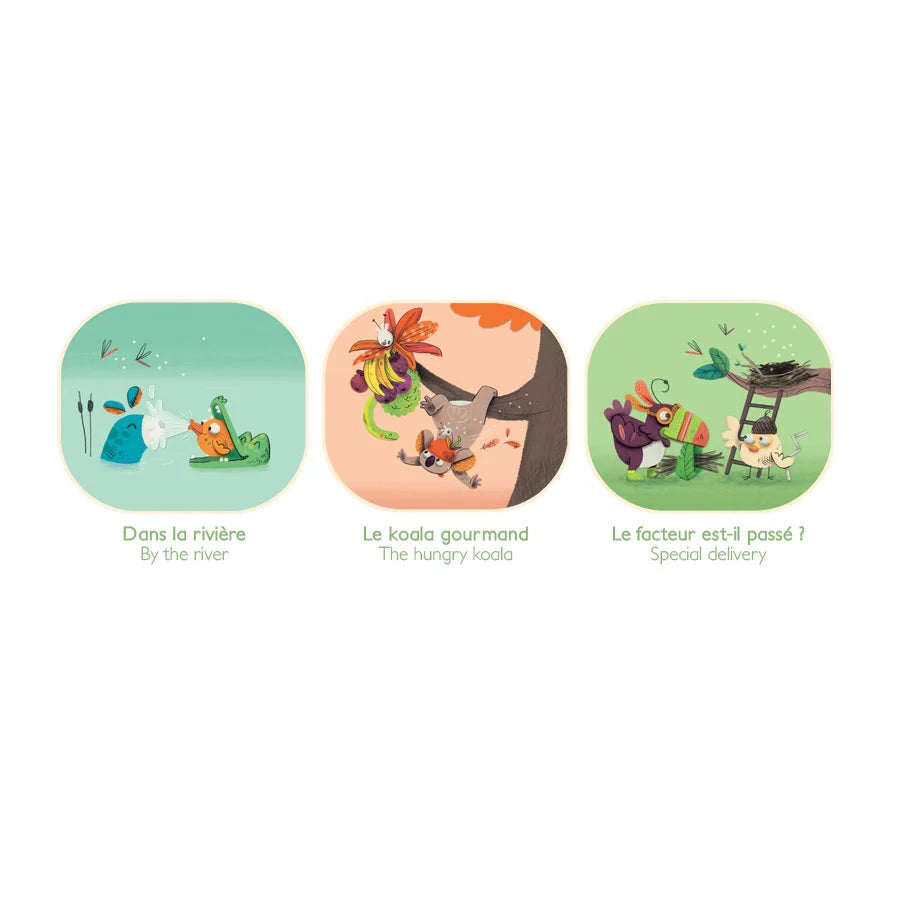 Flashlight where each of the 3 discs projected on the wall tells a story. They tell the joyful and colourful adventures of the Jungle friends. A magical moment to develop the child's imagination.
