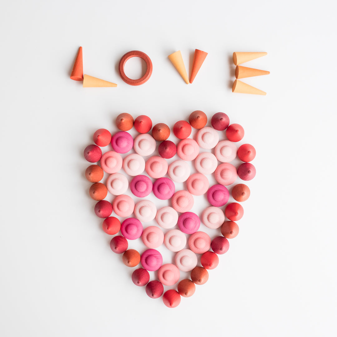 This set of floral wooden mandala pieces puts more tools in your tool box (or toys in your treasure chest as we like to say) to spark creativity and foster autonomous play. Design your own mandalas, shapes, and spirals with the mandala sets from Grapat. Sort and separate the different coloured pieces and create pictures with objects from nature walks or other mandala sets. Each mandala piece is great for imaginative play too, or for counting, building, and creating.