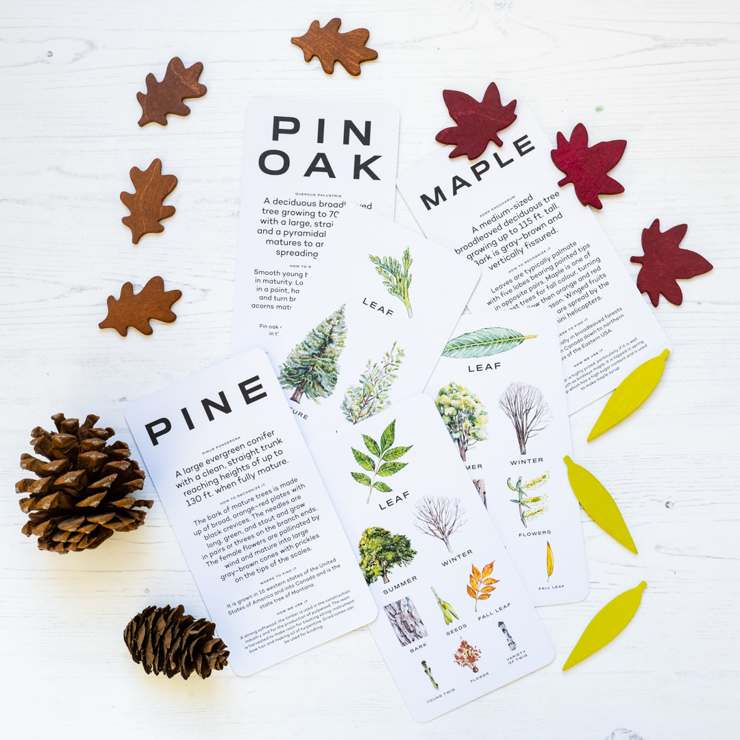 Get to know the trees all around you with this set of informative cards. Learn to recognize the leaves, seeds, bark, and flowers to identify the different tree species in your neighbourhood and beyond. Identify your favourites and challenge yourself to see which trees you can recognize while out and about. Each card contains detailed images and fascinating facts to pour over.