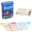 Out of ideas for how to interest bored kids? Pick a card! This card pack in a handy flip-top tin includes 50 fun ideas to keep boredom at bay as kids make the most of inside play. Choose cards with the PAINT icon for creative ideas, HEART icon for active ideas, and the BOOK icon for quiet ideas.
