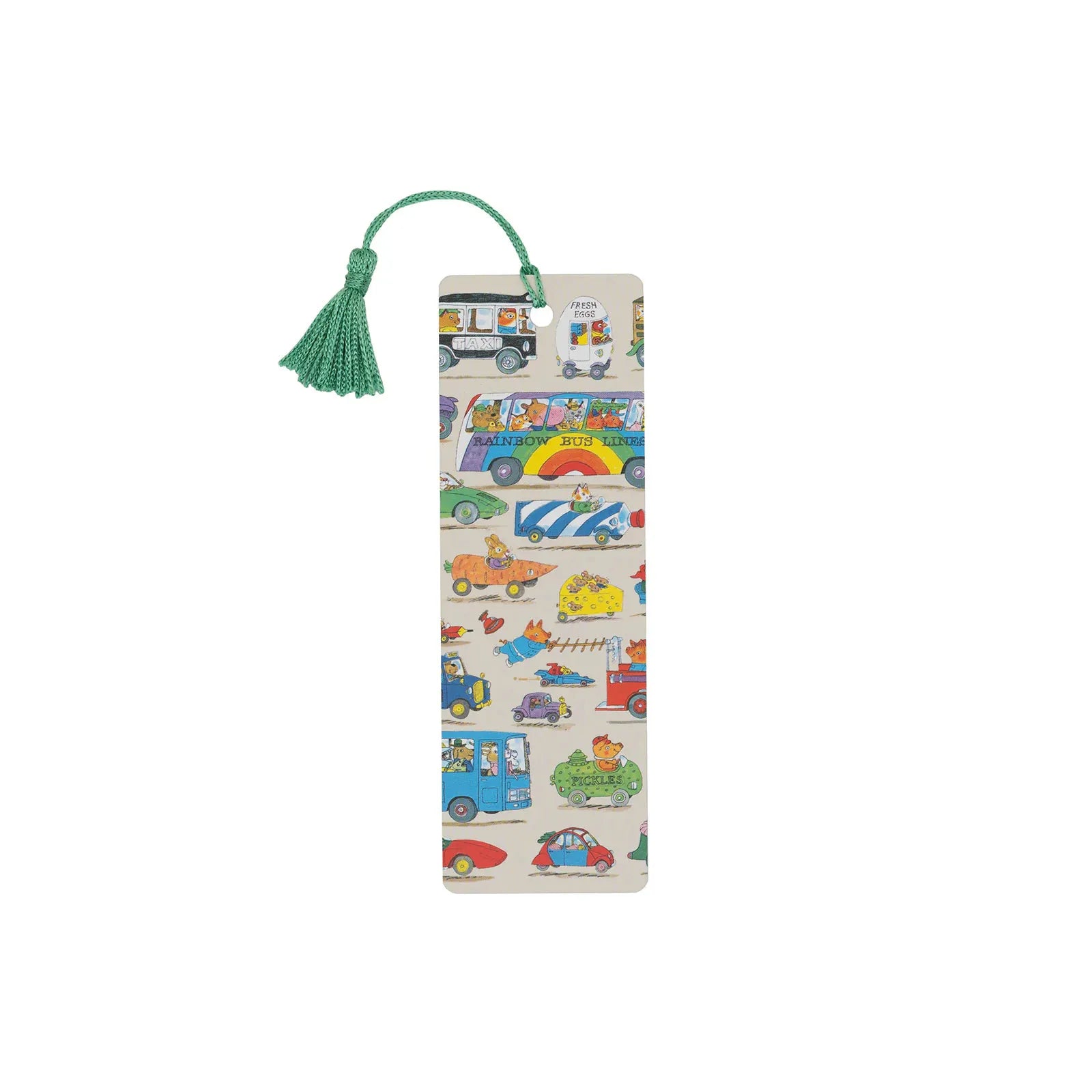 Richard Scarry's Cars and Trucks and Things That Go! bookmark: Buckle-up for a fun-filled day of planes, trains, automobiles ... and even a pickle truck! Featuring hundreds of clearly labeled vehicles, this is the perfect book for little vehicle fans from the one and only Richard Scarry.