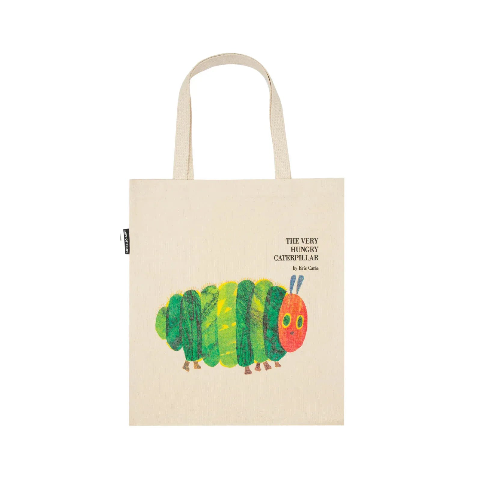 Double-sided tote bag featuring artwork from the first edition cover for The Very Hungry Caterpillar by Eric Carle.