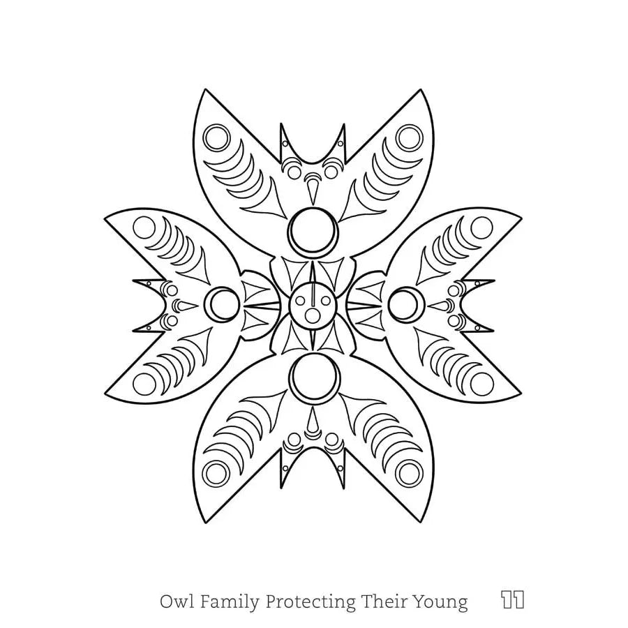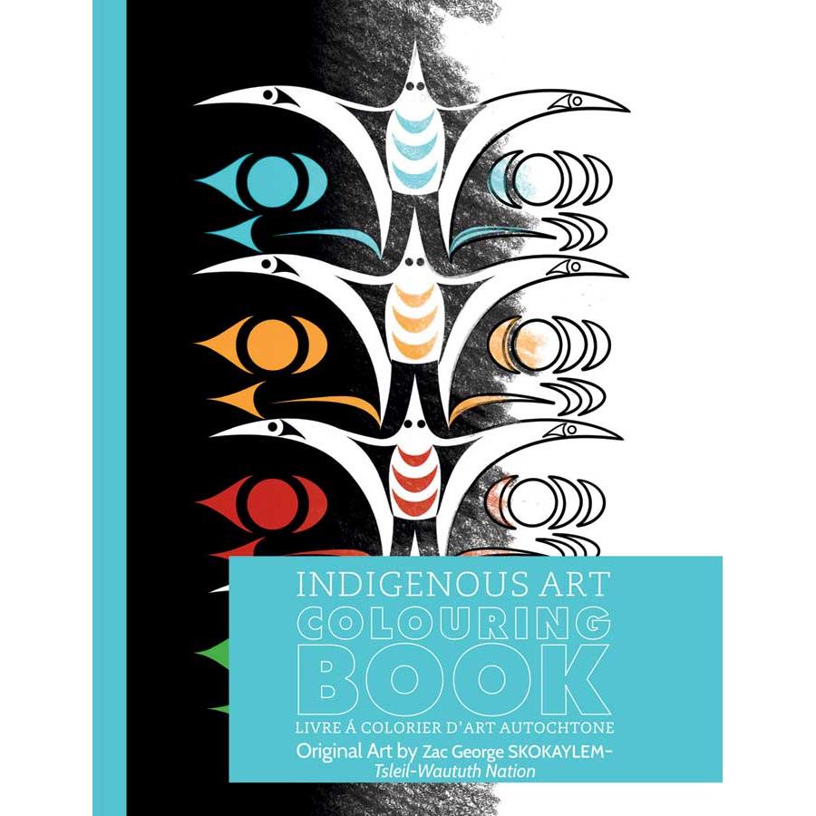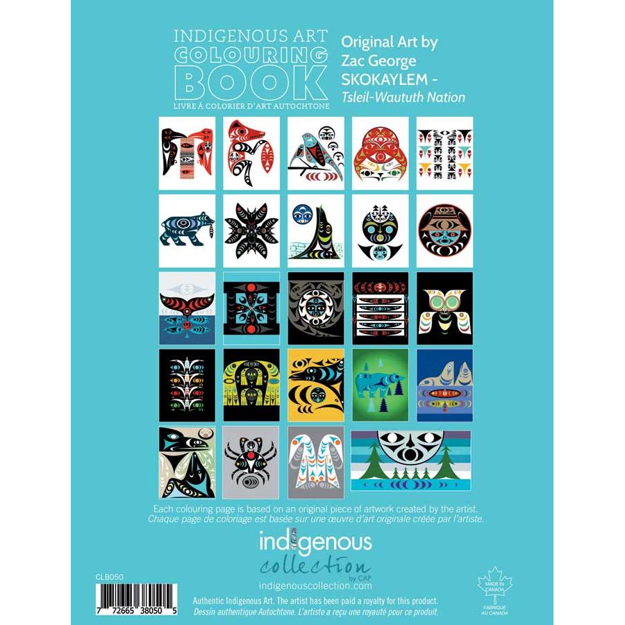 Indigenous art colouring book by artist Zac George SKOKAYLEM. His cultural background is Tsleil-Waultuth Nation The artist is paid a royalty on every sale.