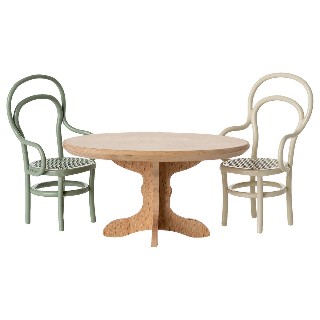 Gather friends and family for a cosy dinner party around this oval dining table. It fits little brother/sister perfectly in SuitCasa and is made in a beautiful wooden quality.