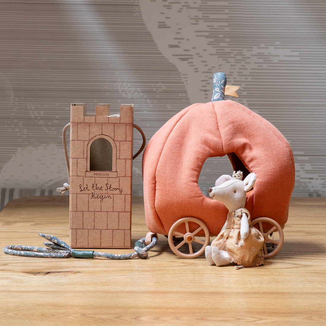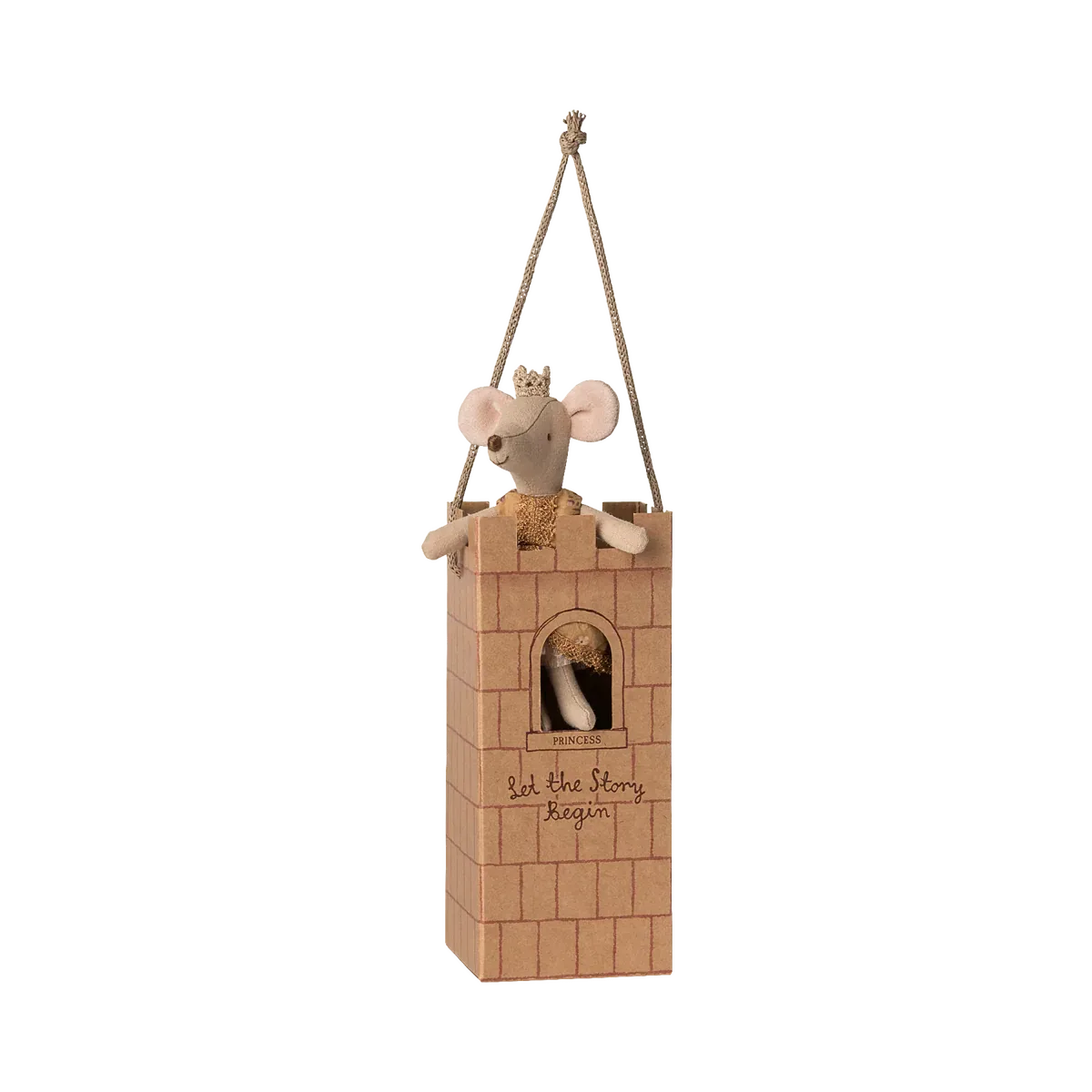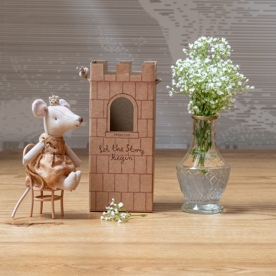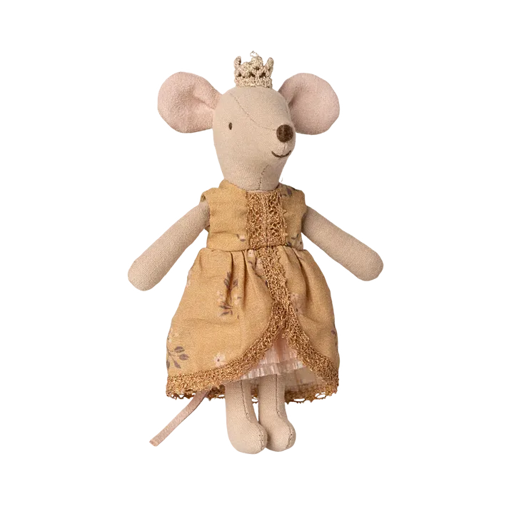A beautiful princess mouse in a big sister size. She is dressed up in her best fit for royalty dress with gorgeous details and a golden crown. She comes with a lovely castle gift box.