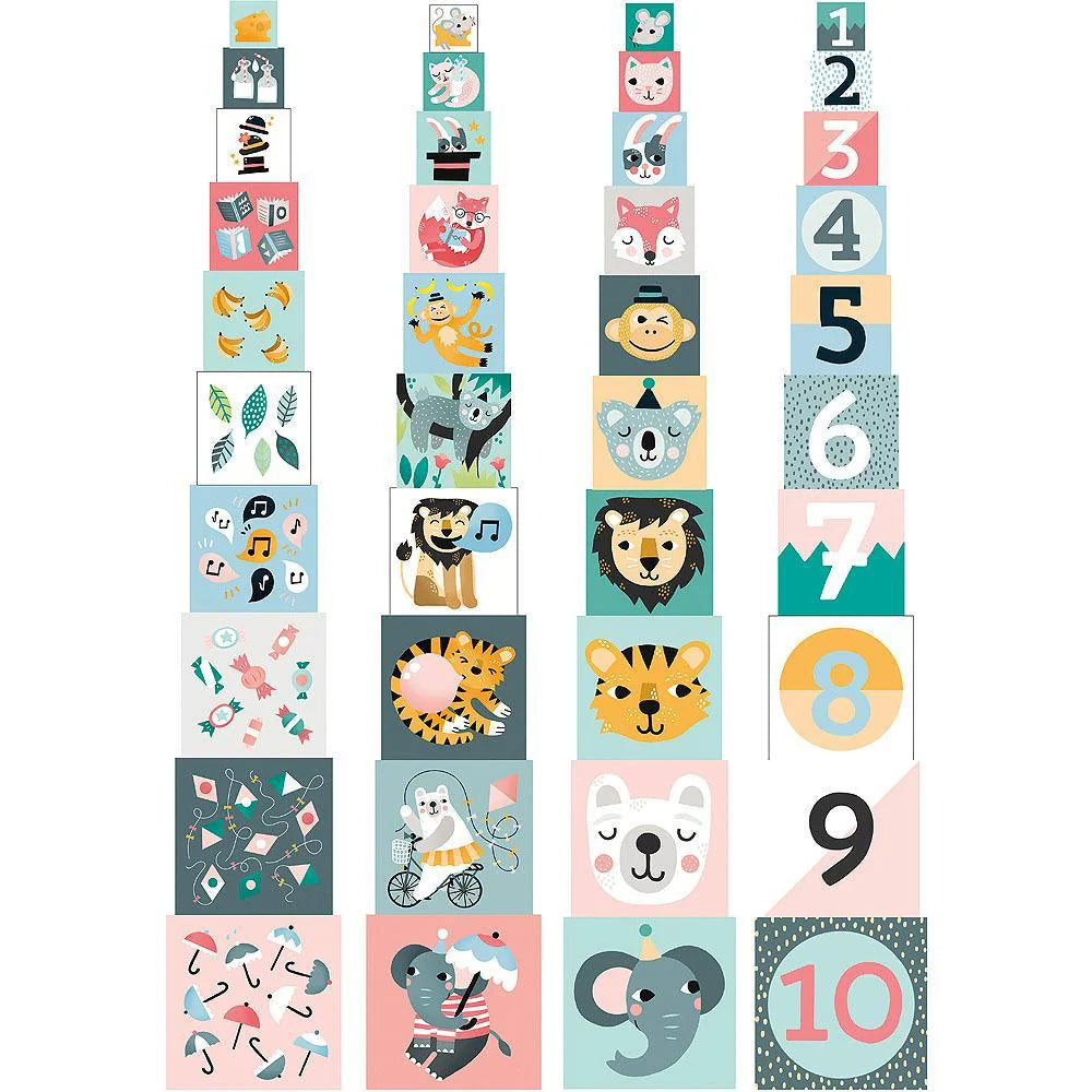 Cardboard Nesting Blocks illustrated by Michelle Carlslund. Produced by VILAC.