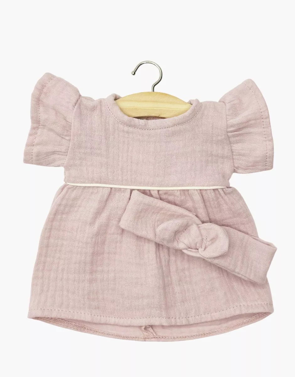Minikane Gordis - Daisy dress and matching headband with a round bow in orchid pink cotton gauze