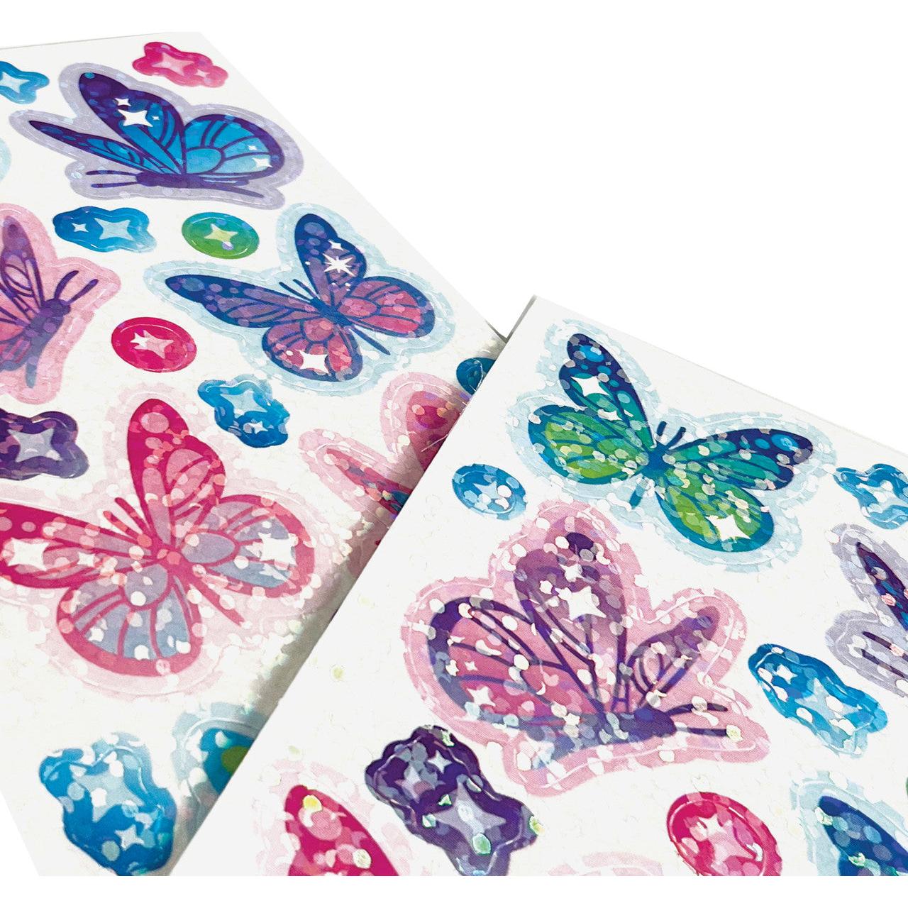 - includes two sticker sheets of butterfly-themed stickers & holographic glitter stickers