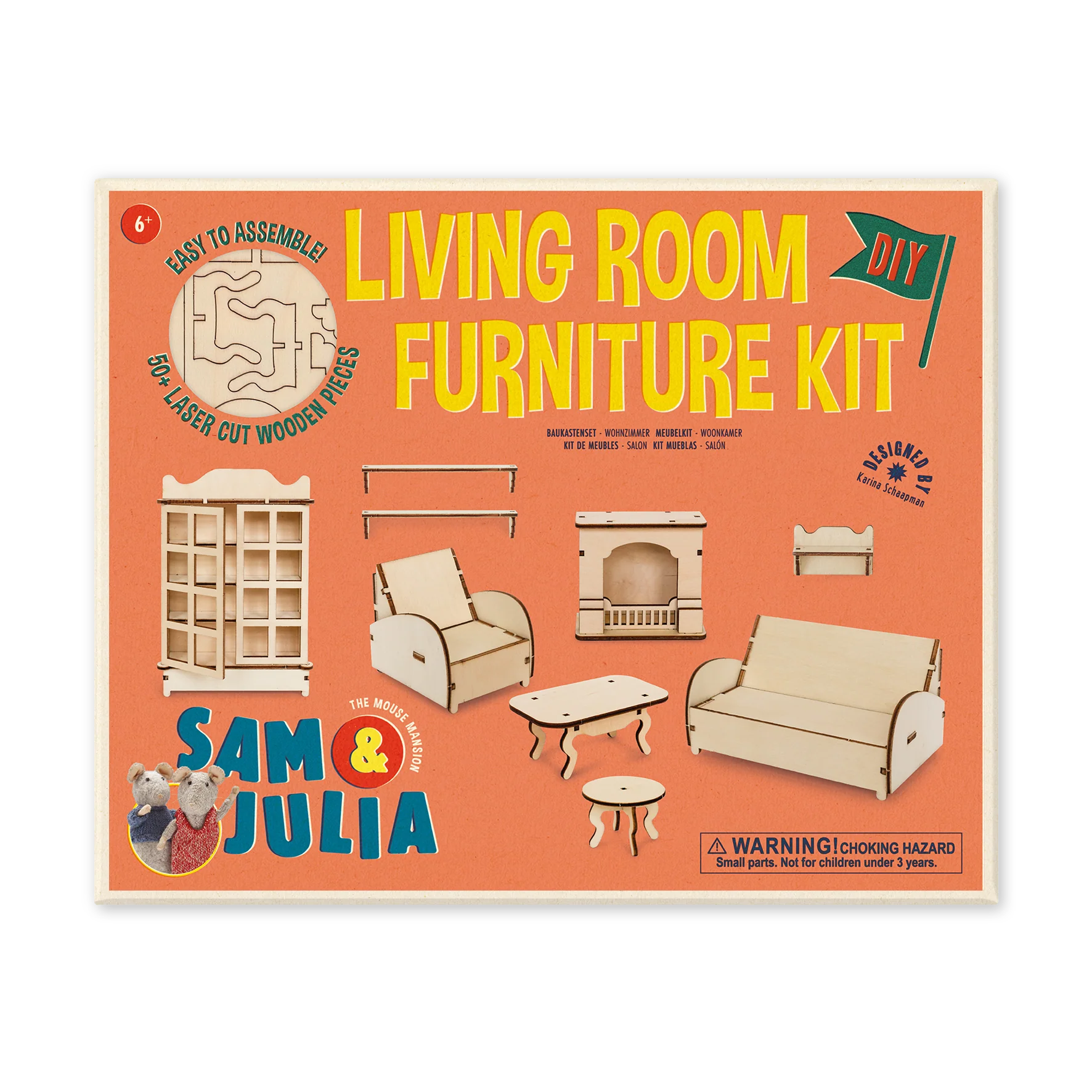 Create a mini living room with this furniture kit! The pre-cut wooden pieces can be easily assembled with simple instructions and are 1:12 scale. Based on the Mouse Mansion book series by Karina Schaapman, the kit lets you bring the charming world of Sam and Julia to life. This furniture kit includes a miniature fireplace, cupboard, sofa, armchair, coffee table, side table, and bookshelves. Paint, glue, and accessories are sold separately.