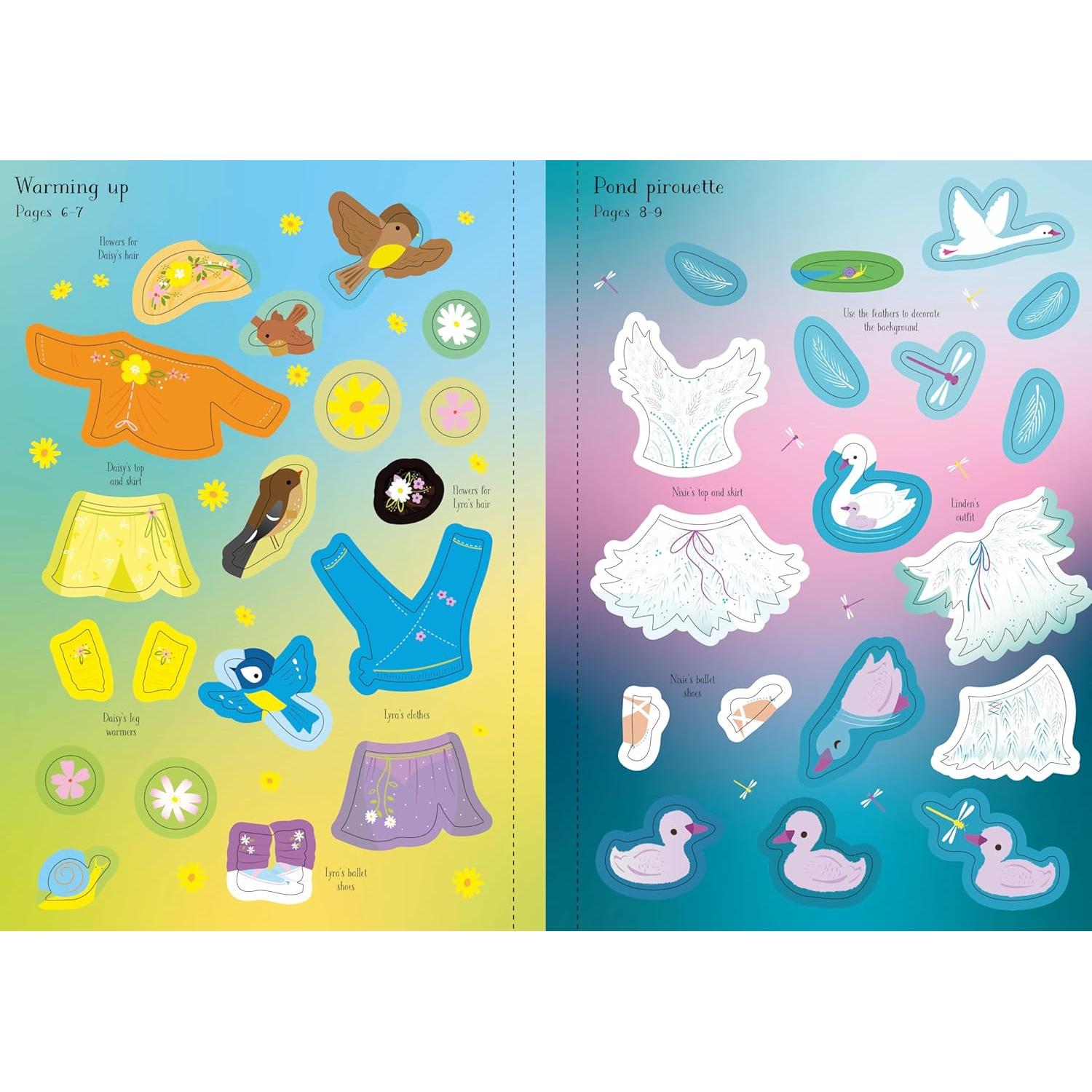 Dress the fairies in this magical addition to the best-selling little Sticker Dolly Dressing series. Choose the dolls' outfits as they dance with elegant swans, rehearse among flowers, choose their ballet clothes and pirouette beside a fountain, plus lots more.