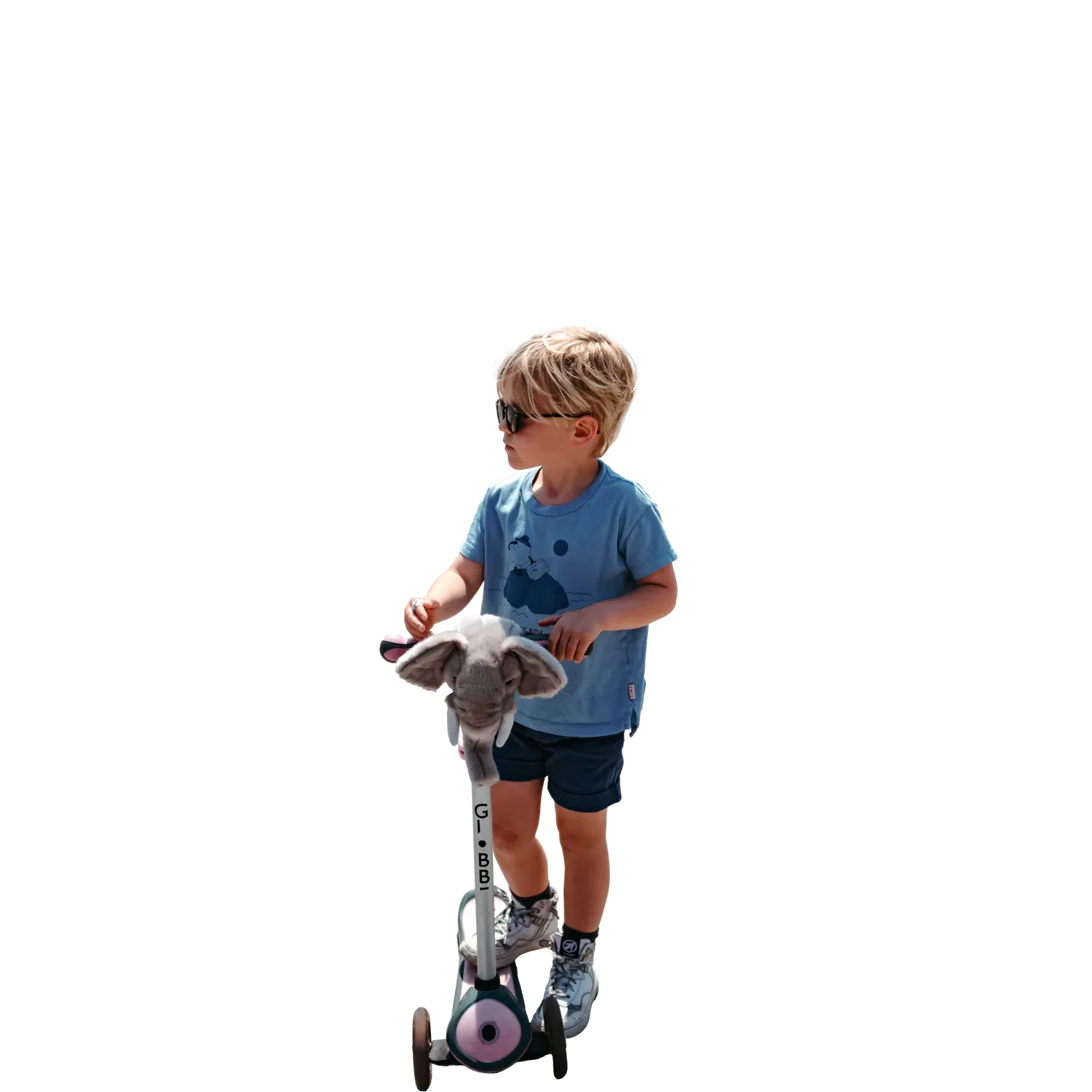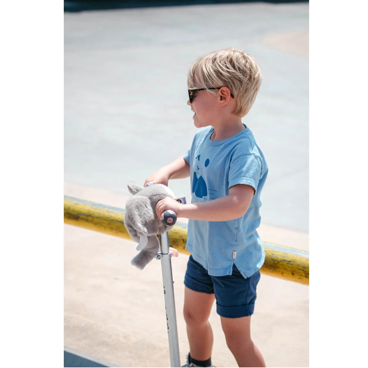Turn your scooter or bike into a real friend with this fun animal head for the handlebars. This little elephant would love to go out with you! These super soft heads can easily be applied with velcro to your handlebars.
