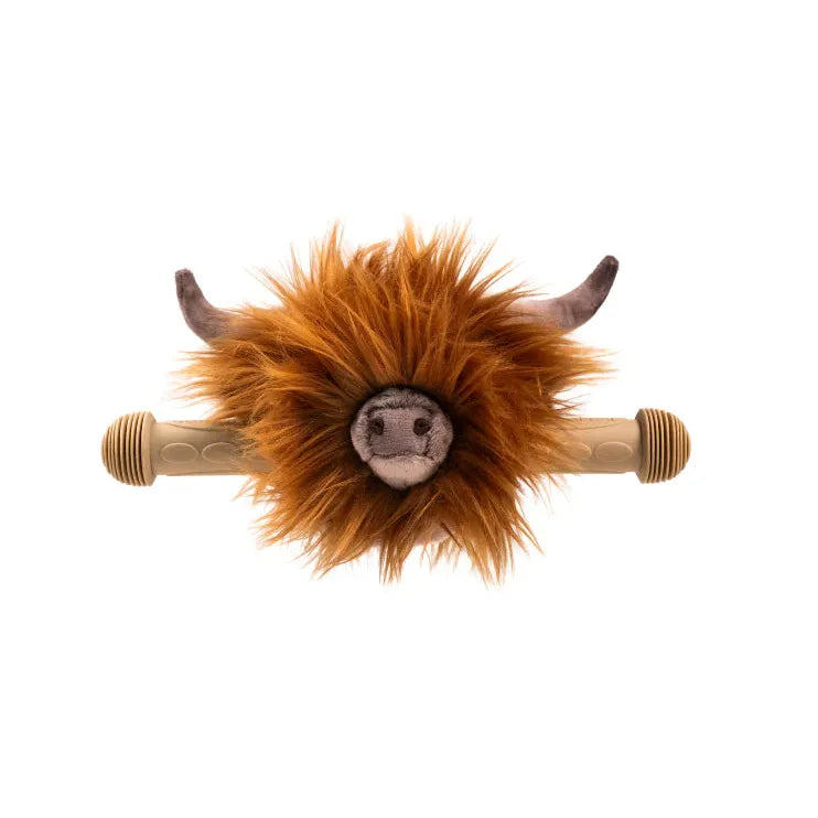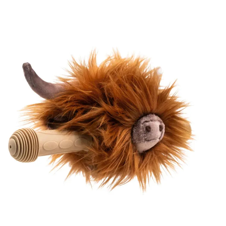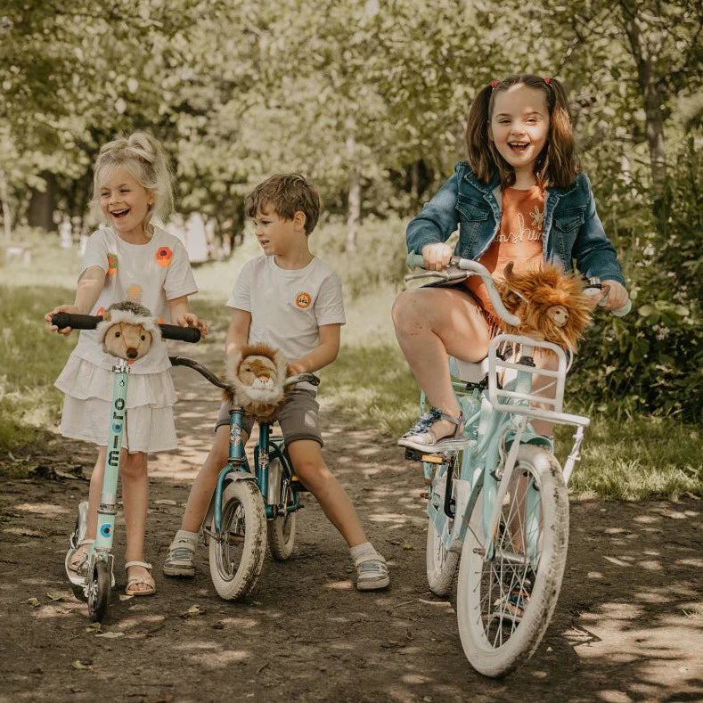 Turn your scooter or bike into a real friend with this fun animal head for the handlebars. This highland cow would love to go out with you! These super soft heads can easily be applied with velcro to your handlebars