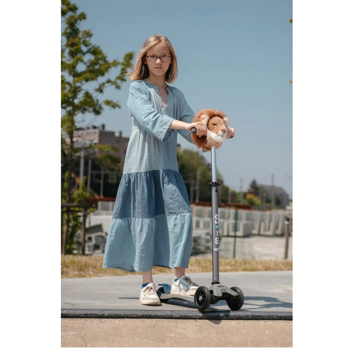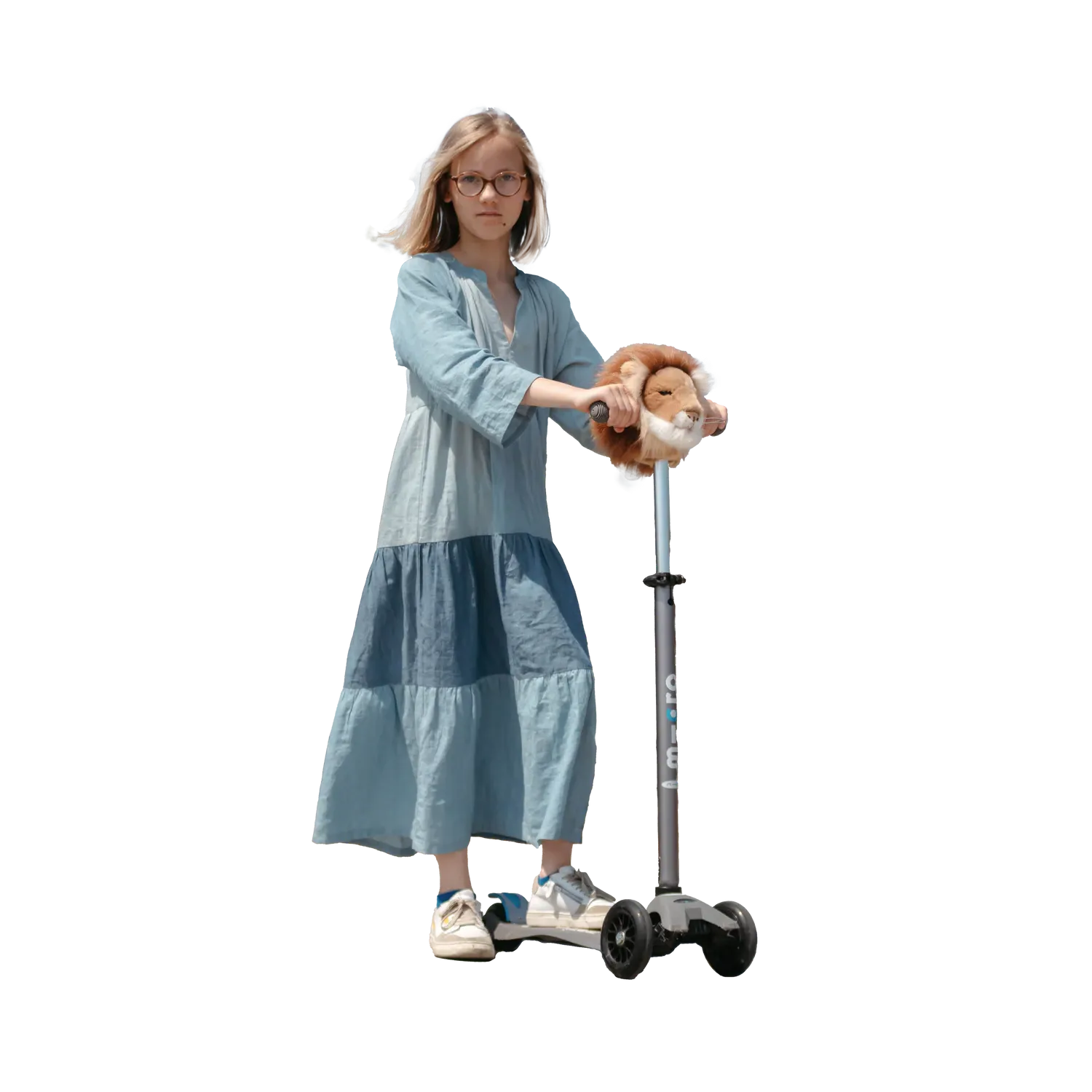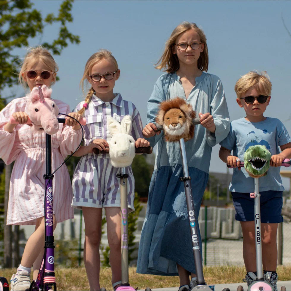 Turn your scooter or bike into a real friend with this fun animal head for the handlebars. This little lion would love to go out with you! These super soft heads can easily be applied with velcro to your handlebars.