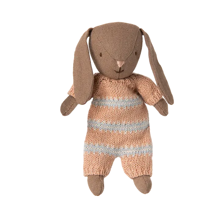 Pre Order Maileg Bunny, Micro - Brown - Dusty rose knitted suit