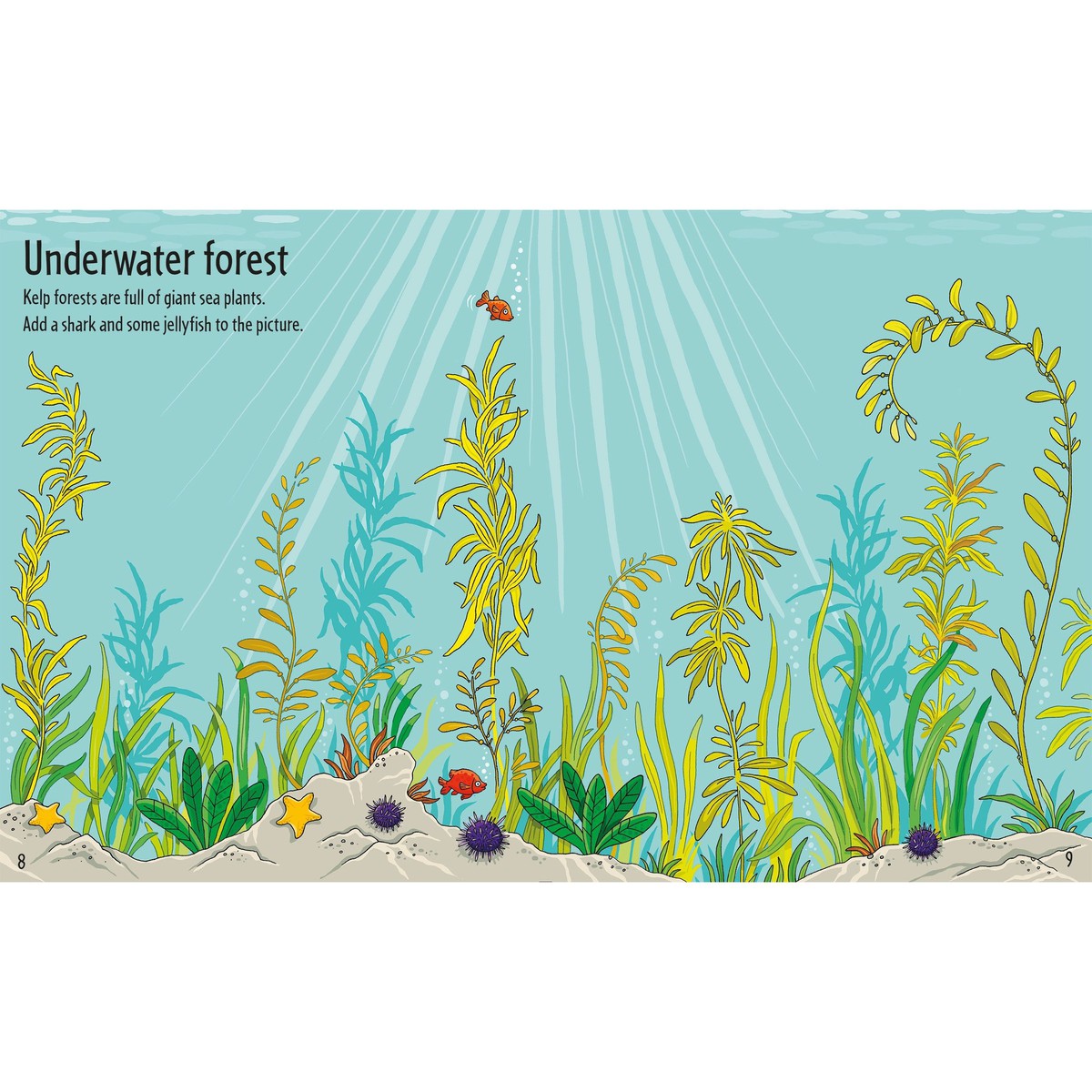 There is an amazing array of sea creatures to discover in this lively sticker book. With over 130 stickers including tiny sea snails, a huge humpback whale, an adorable turtle and a friendly octopus. Children will love finding a home for each creature in scenes including ”Freezing Waters”, ”Underwater Forest”, and “The Shipwreck”.