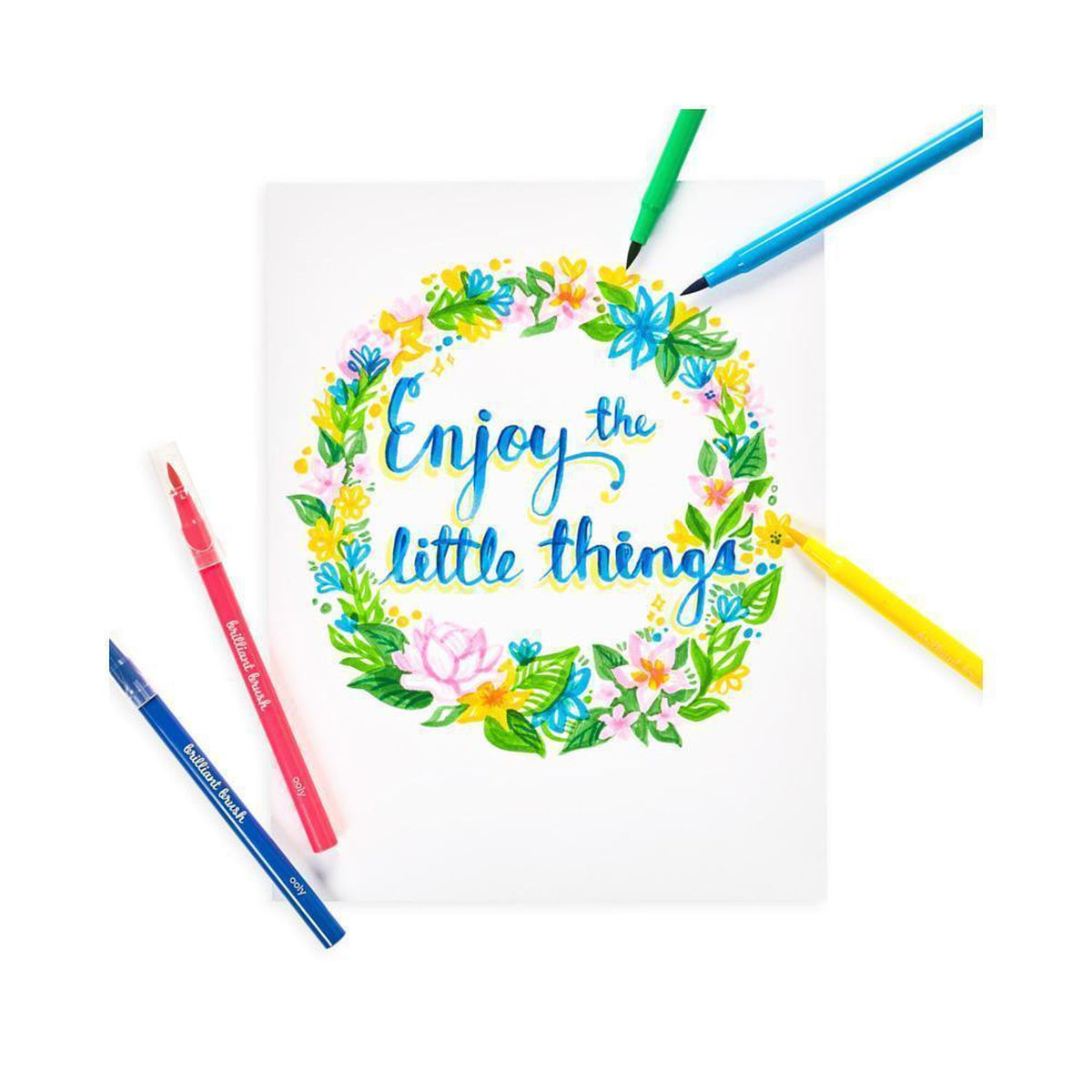 Beautifully broad strokes or finely detailed lines; the choice is yours with this set of soft brush tip markers that will elevate your marker art like none other. The Brilliant Brush markers set is like painting in vibrant colors with a marker with it’s long, felt brush tip that gives you ultimate control of your marker art and hand lettering projects.