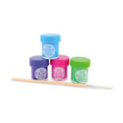 A complete set of poster paints for artsy fun. lil' Poster Paint Pods come with 12 vibrant colored paints each stored in sturdy and reusable "paint pods". Included in the set is a paintbrush and a handy travel case; everything you need to make fun and colorful painted masterpieces. 'lil Poster Paint Pods are water soluble and will wash right out of fabrics too.
