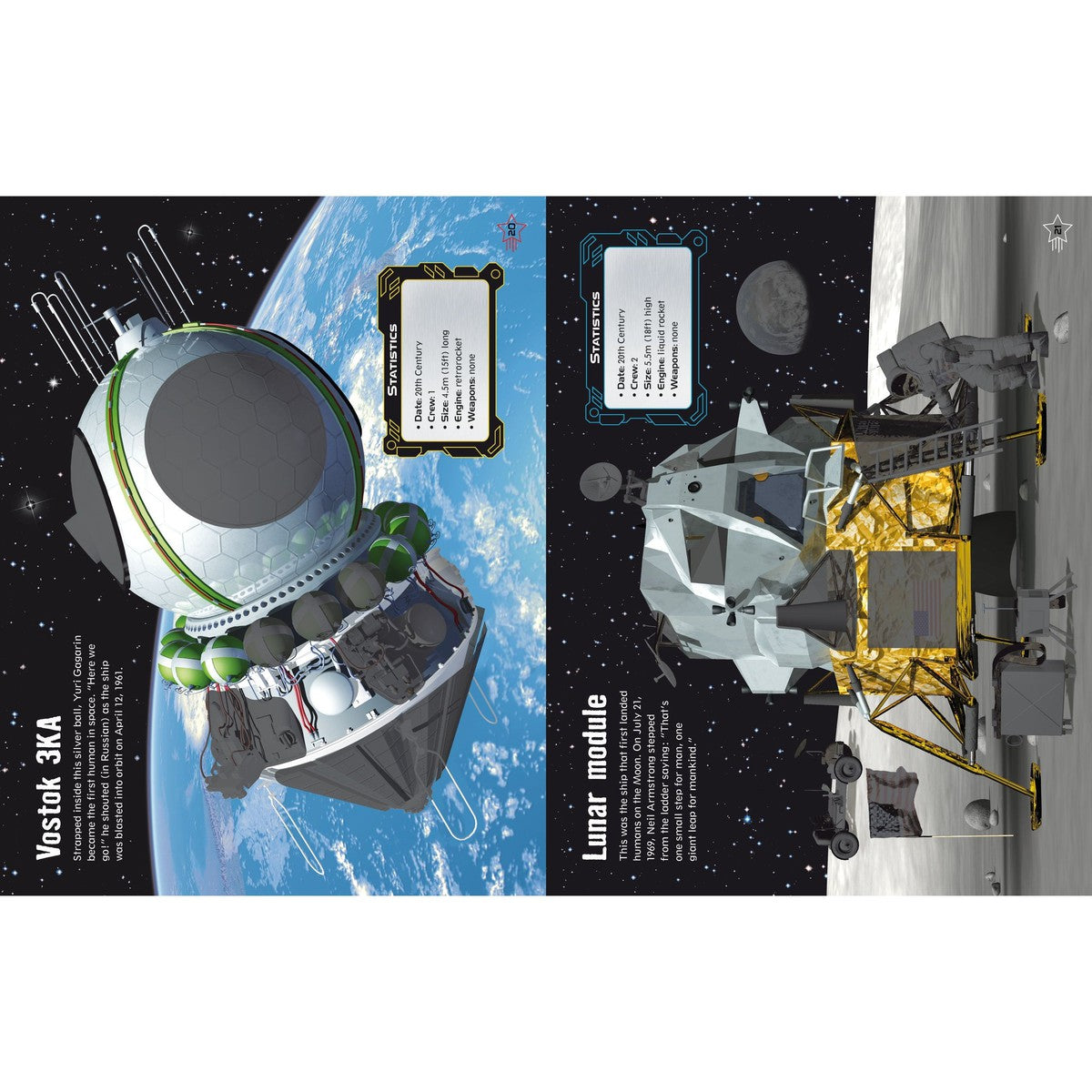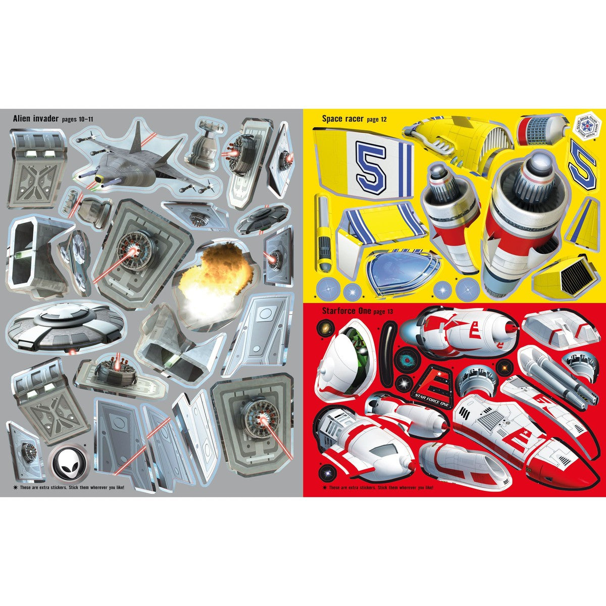Young space fans can create their own amazing spaceships in this skyrocketing sticker book. 10 full pages of stickers, including laser guns, rocket boosters, viewing ports and more will keep children entertained for hours. Includes spaceships inspired by famous science fiction stories, as well as actual spaceships and satellites that exist today.