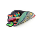 - fabric game board zips up to keep everything enclosed