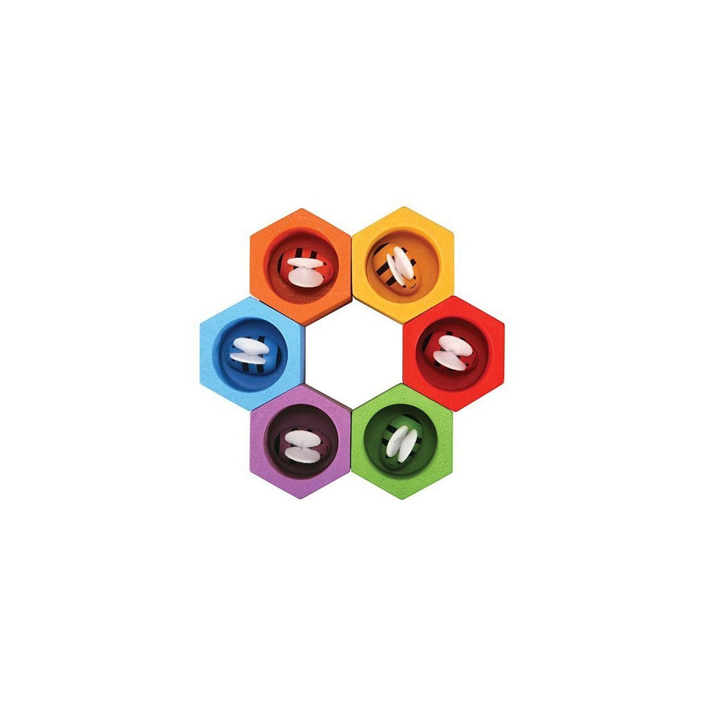 Keep your kiddos busy as bees with this fantastic educational toy from Plan Toys. Stack the blocks and knock them down; explore shapes; including the bee-favoured hexagon; sort by colour, and count out the bees, 1..., 2..., 3... Use the included wooden tongs to pick up each little colourful bee and carefully place them back in their matching hive homes. More than just a fun interactive toy, the Beehives set also opens the door to exploring the fascinating world of bees!