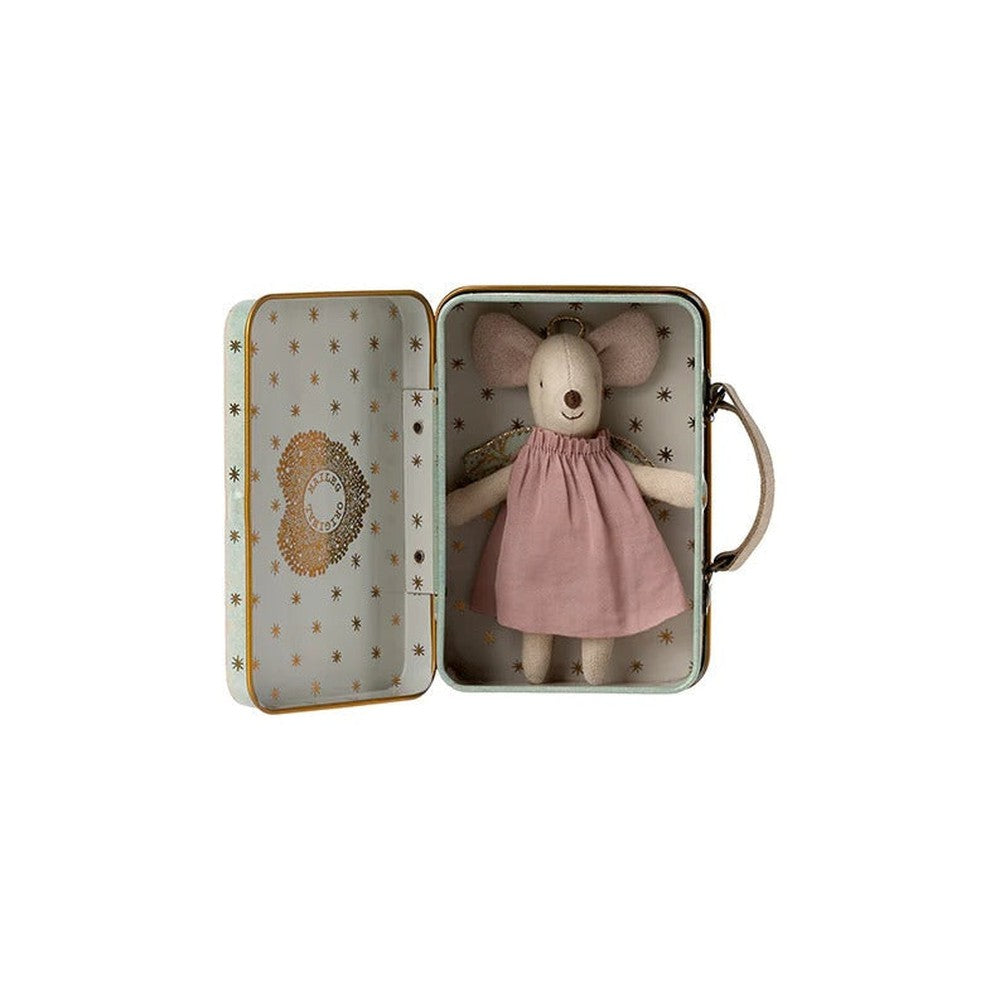 Sweet in their pink gown, the guardian angel mouse is ready to travel with you wherever you may roam. Donning halo and sweet floral print wings, the angel mouse fits neatly into the suitcase.