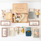 - includes mum mouse with pyjamas, dad mouse with pyjamas, cardboard cigar box, and cosy bedding