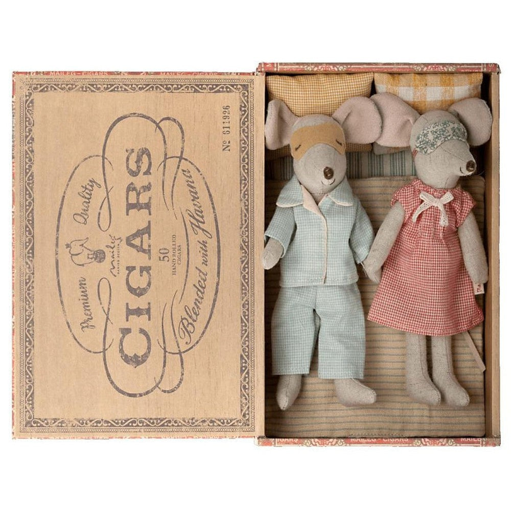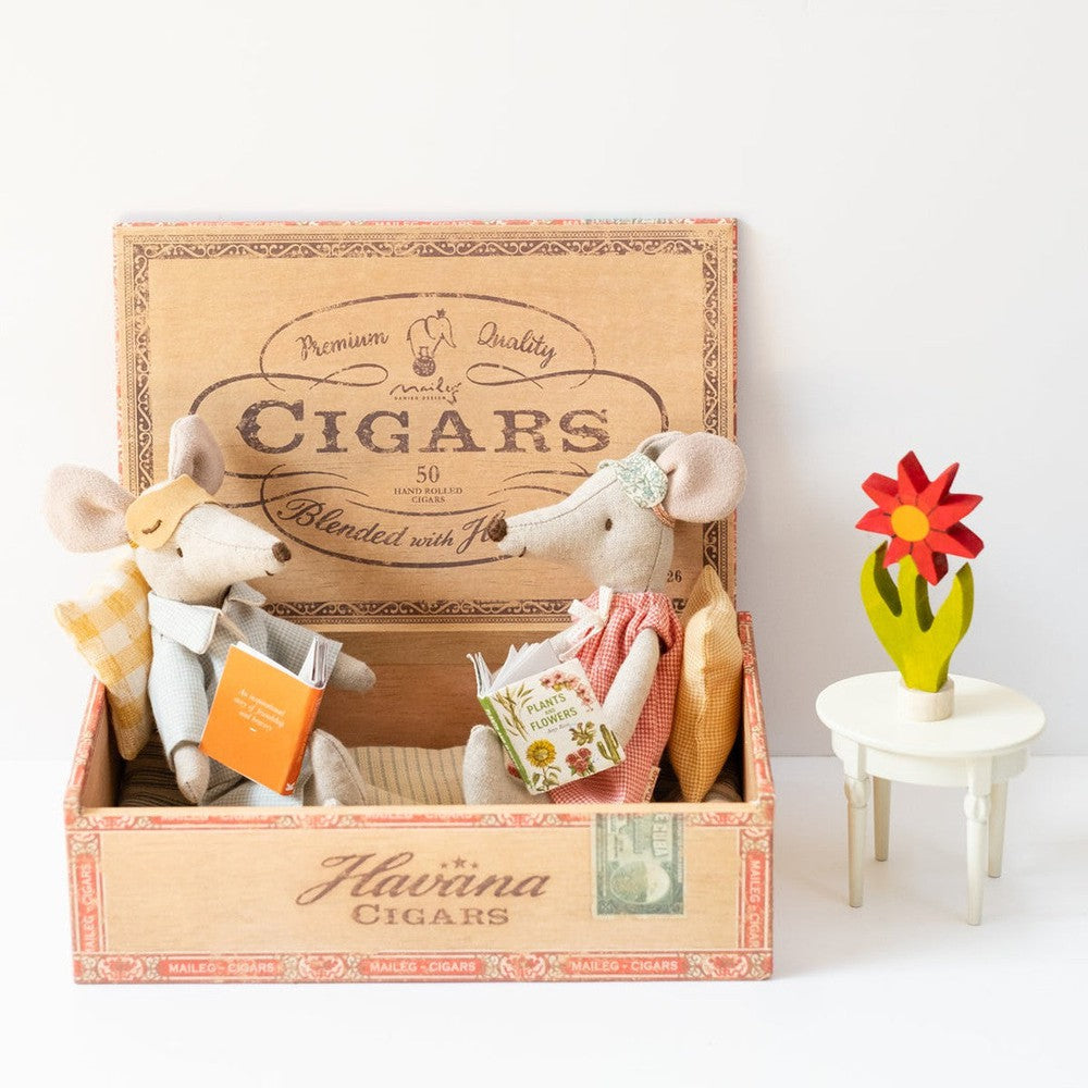 Maileg mom and dad mice in cigar box 2022
