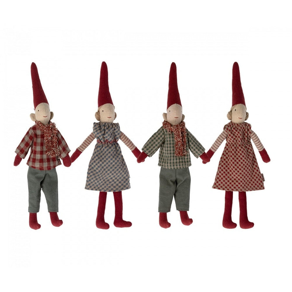Pixies size 1 - a collection of four individual pixies. All dressed up in cozy Christmas clothes. They all have magnets in their hands and in left foot so they can climb and decorate everywhere.