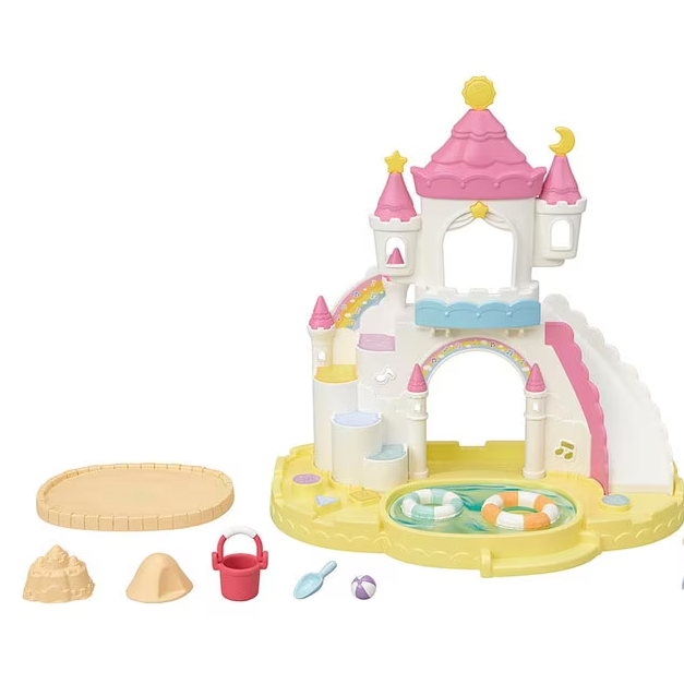 The Nursery Sandbox & Pool set is perfect for the nursery. It comes with a Elephant baby Hilton. The castle has windows where the babies can peek out from and a big slide.