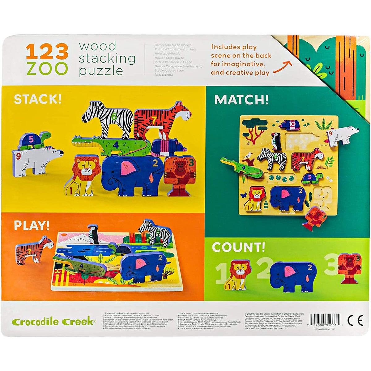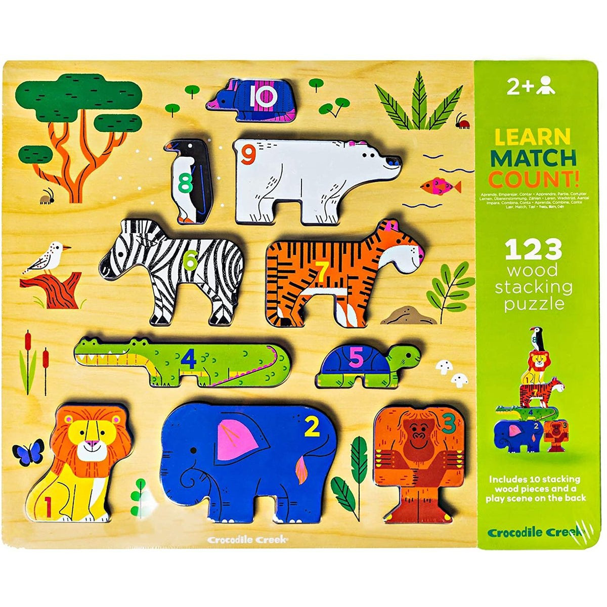 Crocodile Creek stacking wood puzzle 123 zoo