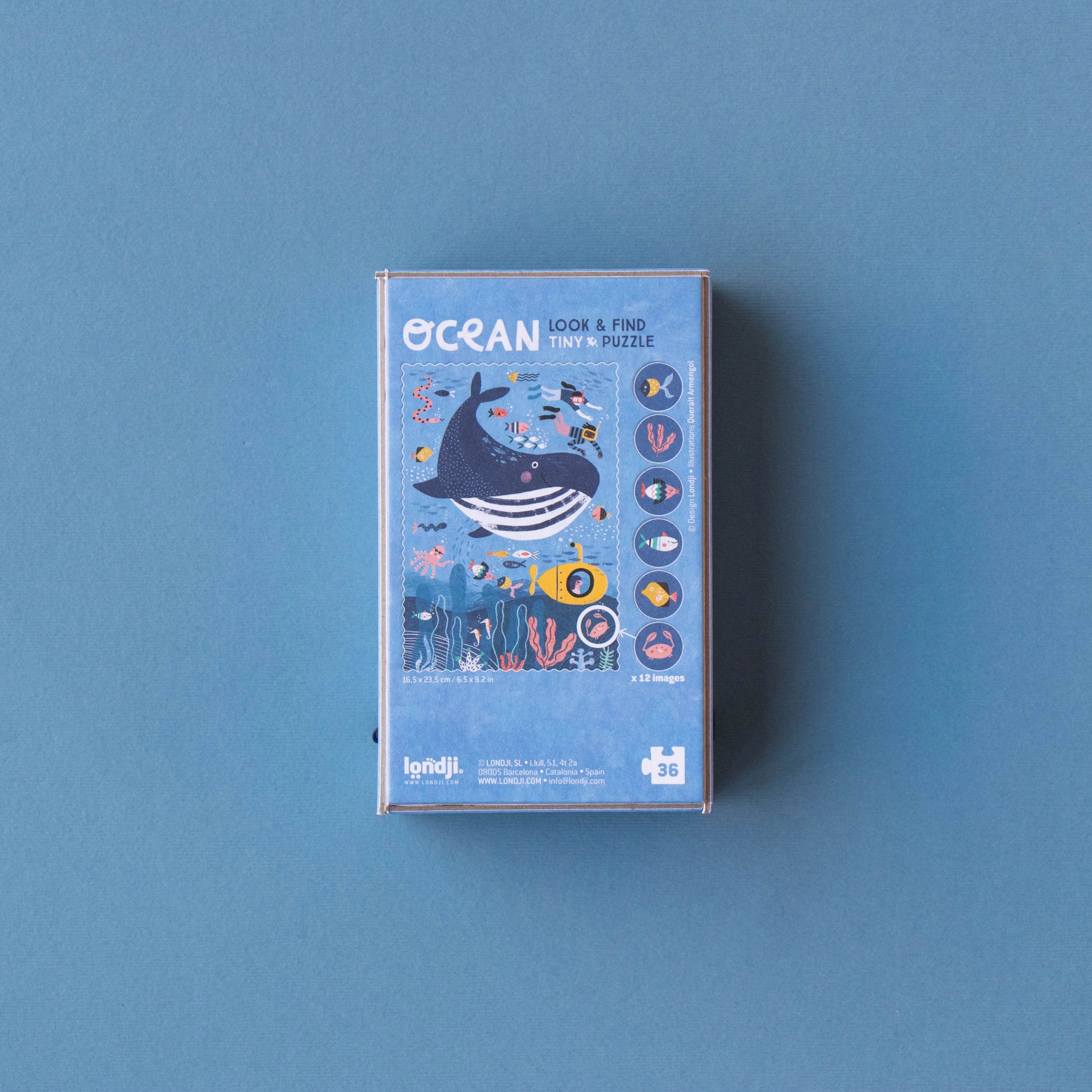 A small 36-piece puzzle that includes 12 observation pieces about the sea and ocean. An educational, sustainable, and locally made toy. Ideal for travel.