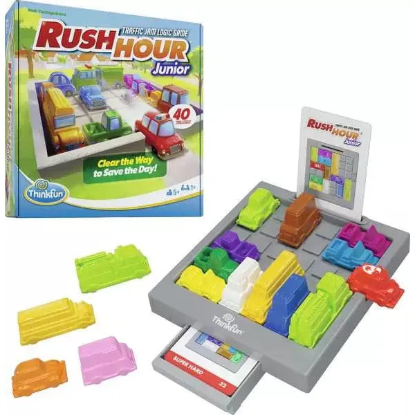 A younger twist on the classic traffic game! Can you solve the puzzle and manoeuvre the red car out of the traffic jam? Rush Hour Jr. comes with 40 challenge cards- set up the 15 mini plastic vehicles on the game's plastic grid according to the map on the card, then move them around the board till you manage to make a path out of a jam. The puzzles start at an easier level then the classic Rush Hour, offering puzzle-solving fun for even younger kiddos. Comes with 4 different levels from beginner to expert for puzzle lovers to master!