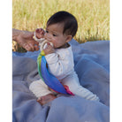 Let your young baby discover different natural textures with this beautiful teething toy from Sarah's Silks. Made with a solid maple wood ring and natural, hand-dyed silk, your baby can easily grasp the silk cloth and maple ring and delight in the different feel of each. Completely safety tested for babies, these are a wonderful alternative to plastic teething toys.