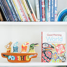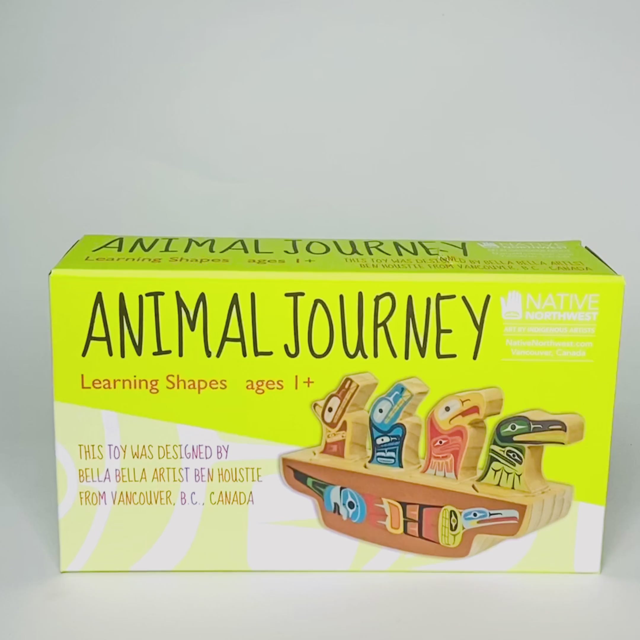 This beautiful sorting toy features art from Northwest Coast aboriginal artist Ben Houstie (Bella Bella). The vibrant colours and gorgeous animals make for a toy that's both fun and a great introduction to the rich artistic traditions of the Pacific Northwest. Each animal fits into one place, making it a great shape sorter as well as an imaginative piece that looks beautiful on a bookshelf.