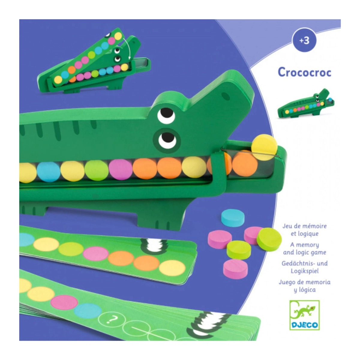 - includes wooden crocodile, 20 coloured discs, and 20 challenge cards