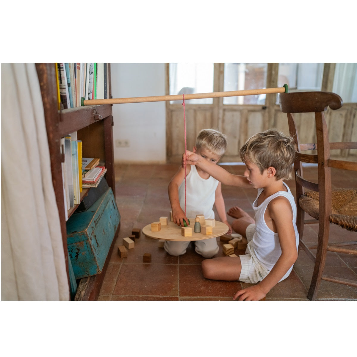 A balance board and a collection of wooden pieces. Challenge yourself to find the perfect balance, make it spin, or experiment with the concepts of physics—all with your own hands! Whether you're testing your skills or exploring the wonders of motion, this set offers endless opportunities!