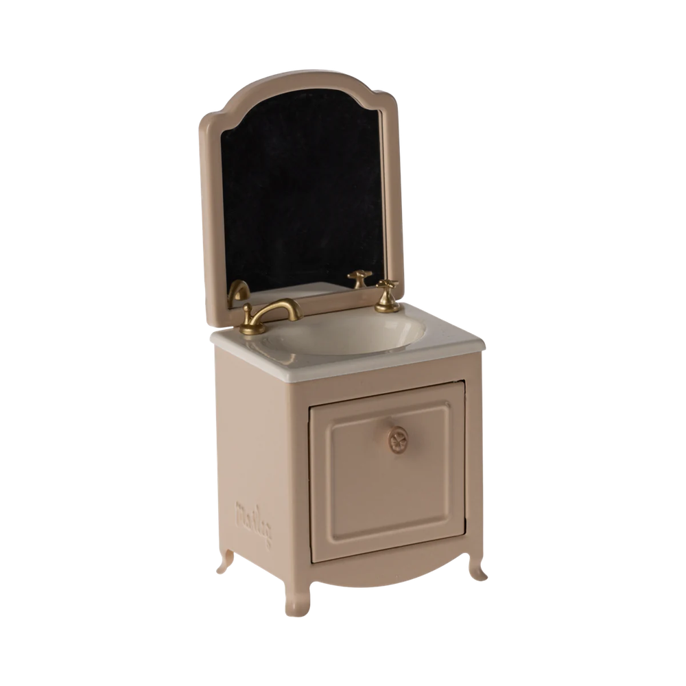 A very essential item for the the bathroom in any mouse house. It has a small closet under the sink and of course a mirror as well. Add the Maileg toilet and bathtub to extent the play.