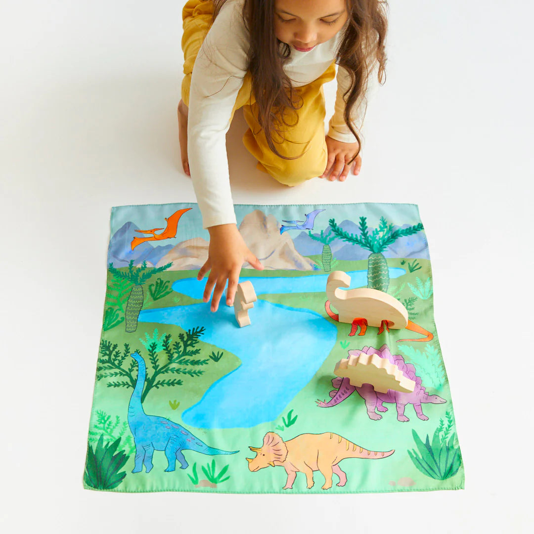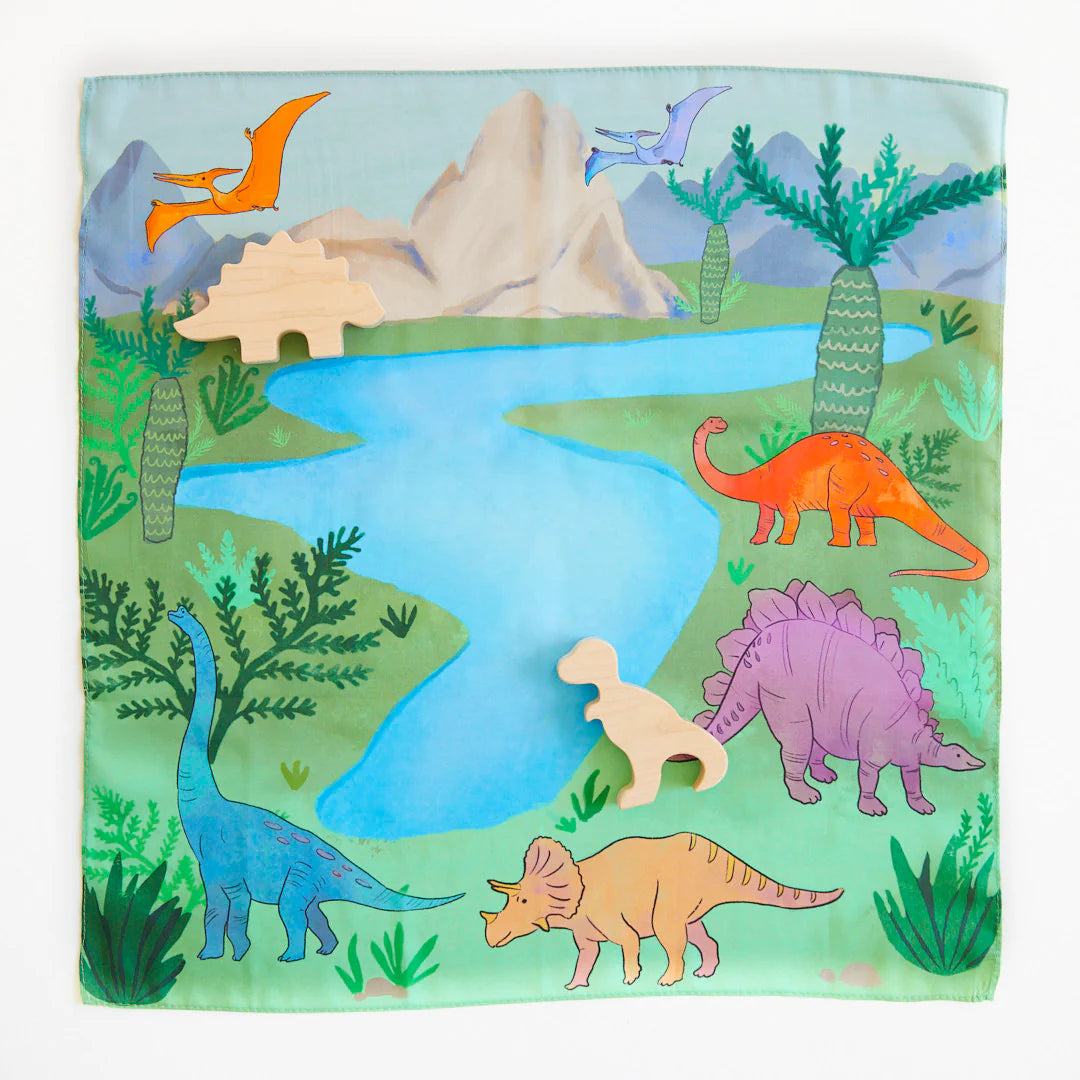 Featuring a limited edition Mini Playsilk, depicting an engaging dinosaur scene - perfect for small world, imaginative play. Little ones will enjoy recognizing their favorite dinosaurs!
