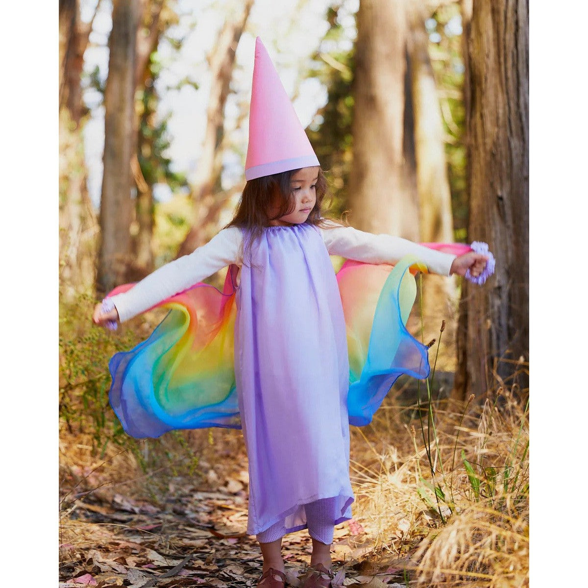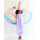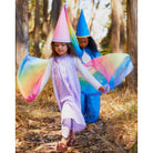 The Fairy Dress is made of heavyweight, 100% pure mulberry silk with airy, georgette rainbow wings attached! A magical costume for a fairy princess, sprite, queen and so much more! Made of soft, sustainable silk and designed to fit comfortably on even the most sensitive little ones, the Fairy Dress is an essential piece for imaginative make-believe play.