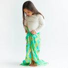 Dinosaur Playsilks are 35 x 35-inch squares made from gorgeous, heavyweight (8 momme) 100% pure silk and printed in our limited edition Dinosaur print. Pair with matching Dinosaur Ears for immersive, creative play!