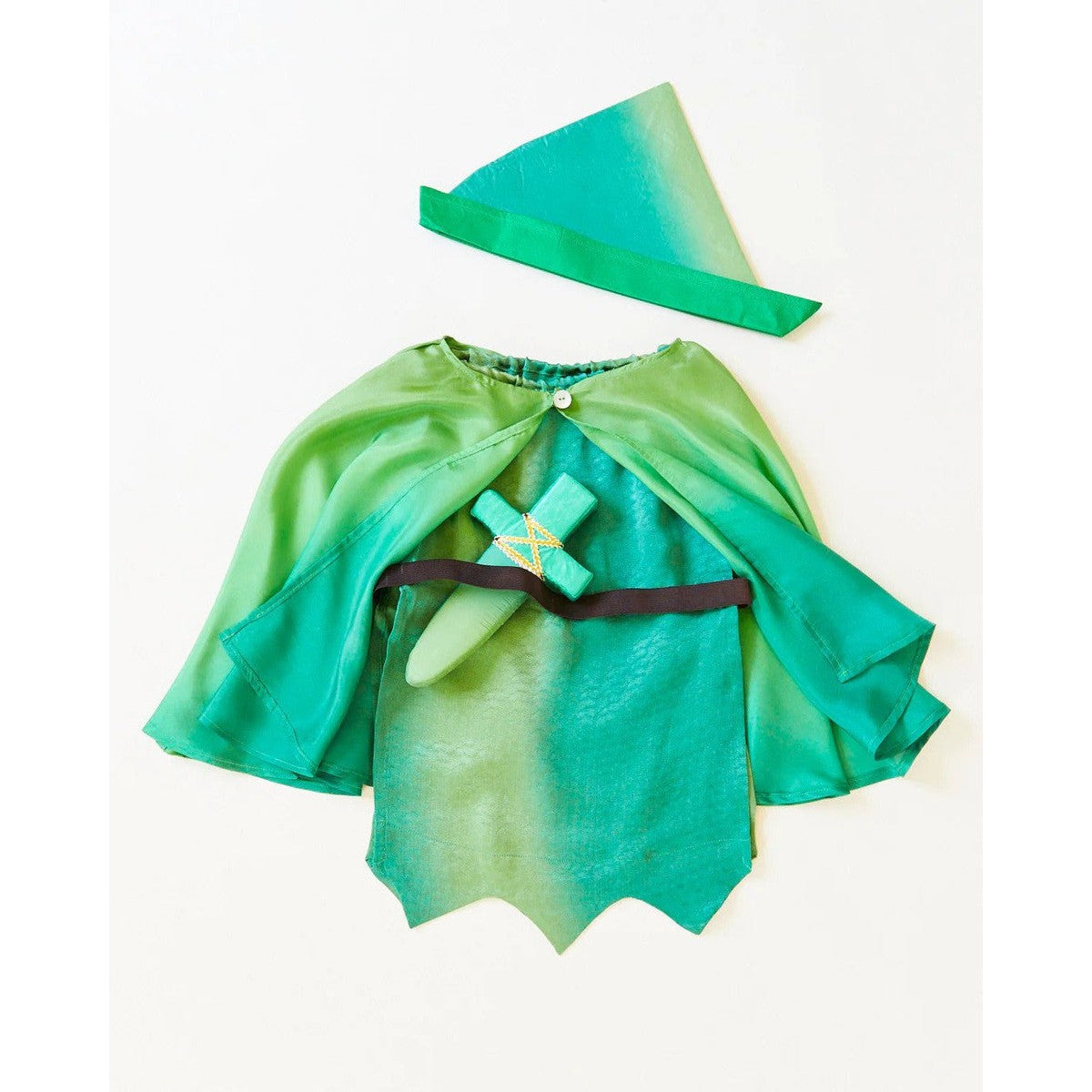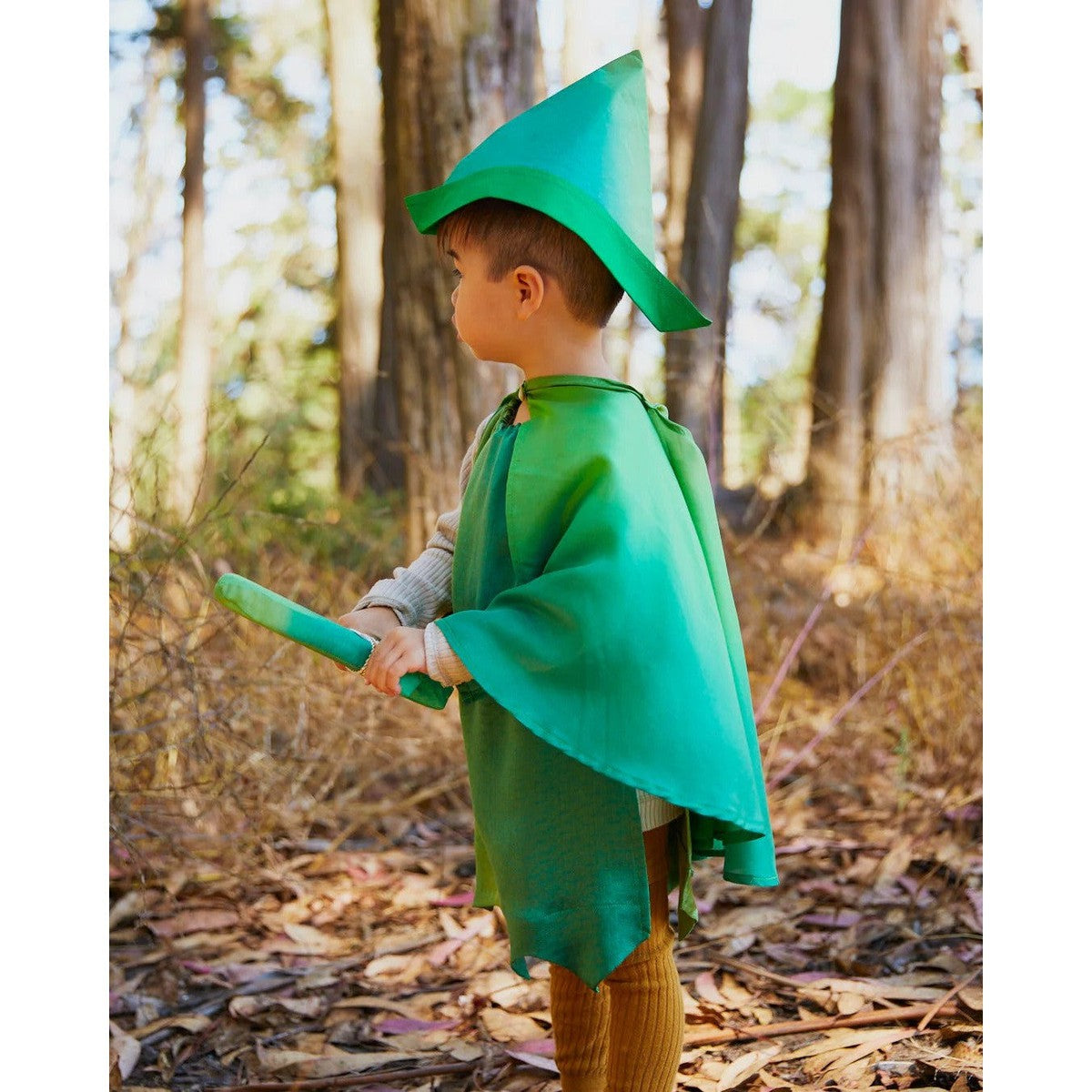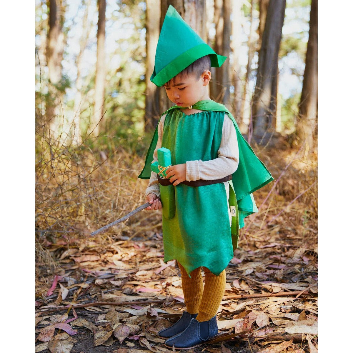 Children's imaginations will come to life with this Peter Pan Tunic! Made from luminously textured jacquard silk, this eco friendly costume is comfortable for little ones with sensory needs and perfect for imaginative play and pretend. Simple, yet whimsical, a perfect costume for an eco-friendly Halloween, that will become a dress-up box staple for years to come.